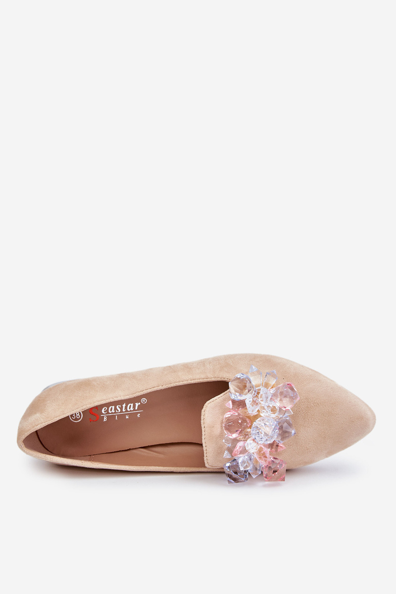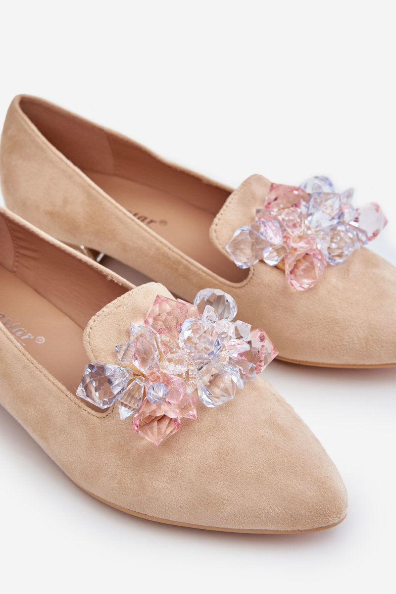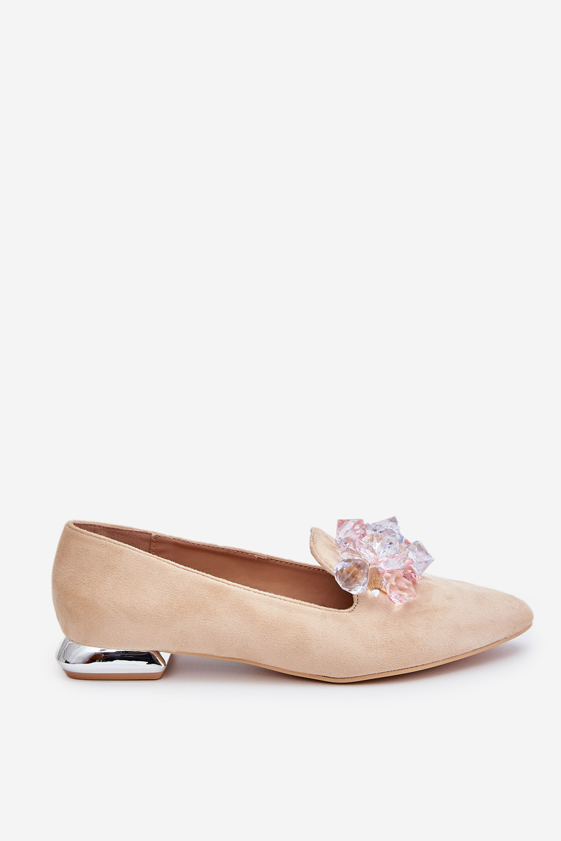 Ženské mokasíny boli vyrobené z pekného ekologického semišu. Na prednej strane sú dekoratívne napodobňujúce kryštály. Moccasíny boli umiestnené na plochú pätu. Päta je mierne stuhnutá a vložka je vyrobená z ekologickej kože, ktorá umožňuje pohodlné použitie obuvi. Tieto elegantné mokasíny sú ideálnym modelom pre mnoho štýlov! Pri výbere veľkosti navrhnite tabuľku veľkosti.