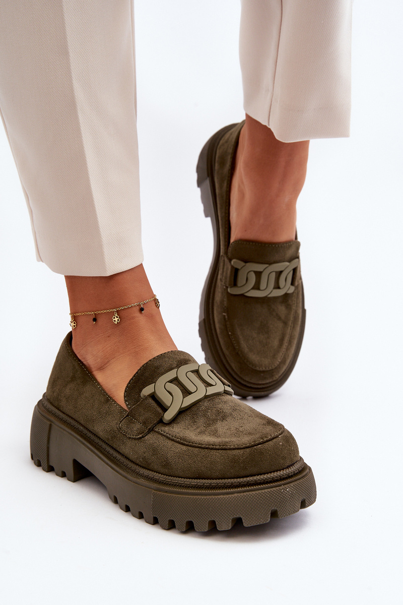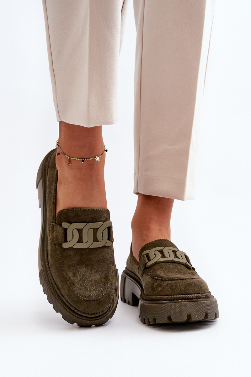 Dámske mokasíny s reťazom tmavozelené Mevre