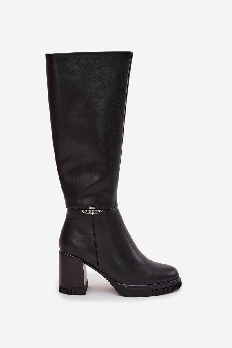 Dámske musketeerské čižmy z prírodnej kože na podpätku Vinceza 66826 Čierne
