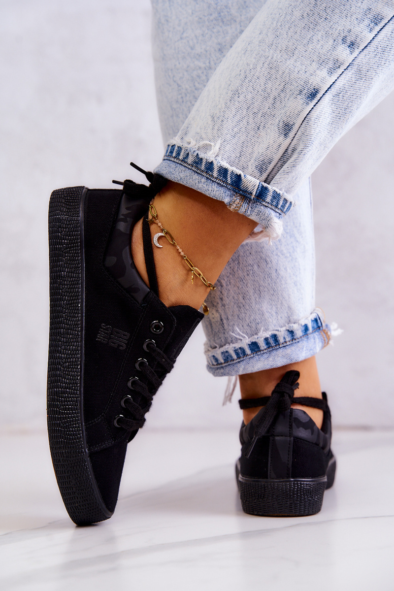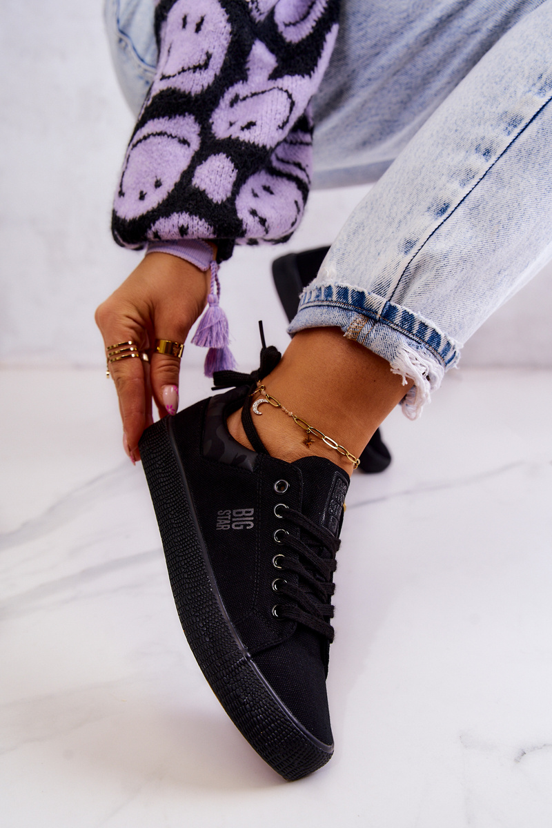 Skvelé, klasické tenisky poľskej značky Big Star. Perfektné každý deň! Môžete ich používať v športových štylizoch pomocou sledovacích súprav a viac elegantnejších, napr. V kombinácii s sukňou tylu. Topánky sú vyrobené z textilného materiálu. Majú klasickú väzbu. Gumová, nekvalitná podrážka je zárukou pohodlia a bezpečnosti. Pri výbere veľkosti navrhnite tabuľku veľkosti.