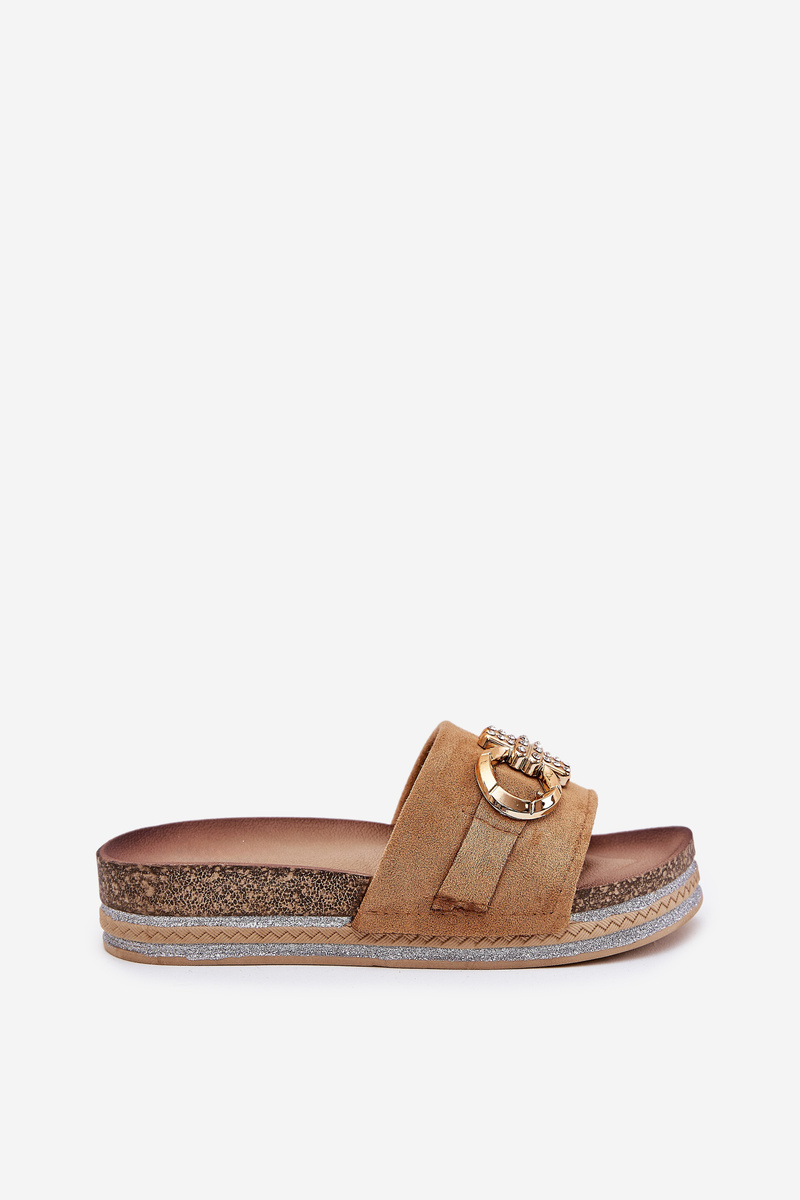 Towar wprowadzony przed 13.12.2024Tak Dámske Pantofle Na Platforme S Lesklými A Zlatou Dekoráciou Camel Rilirea