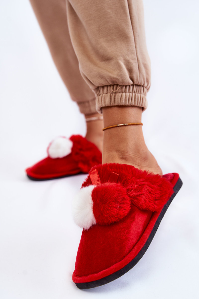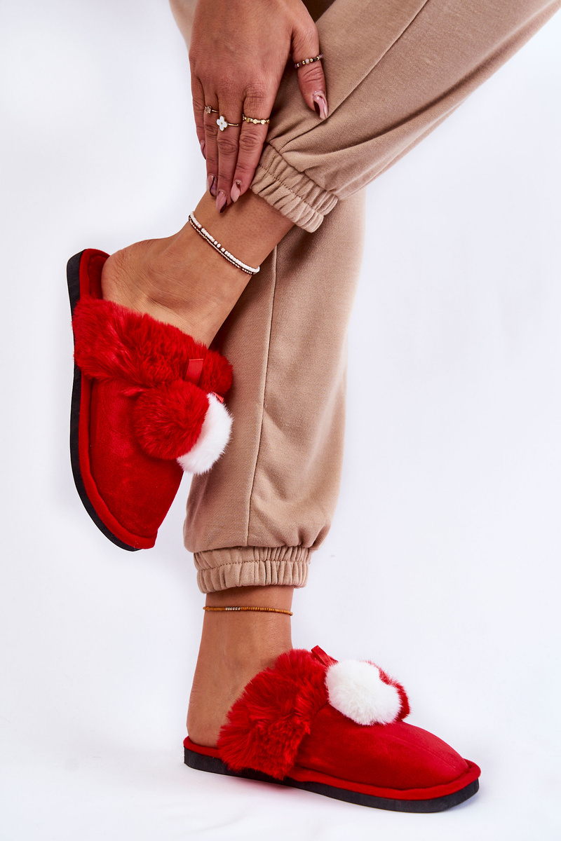 Dámske papiere s pompoms a kožušinami červenej sahira