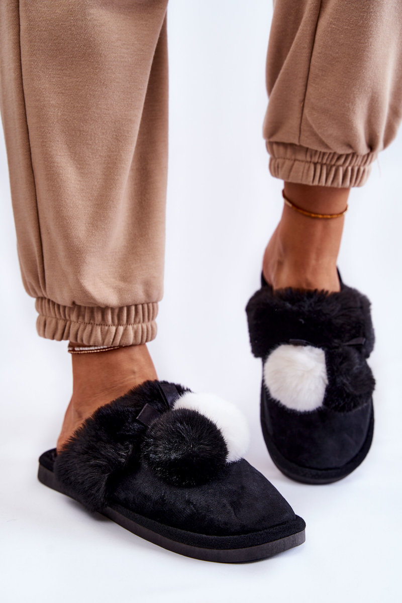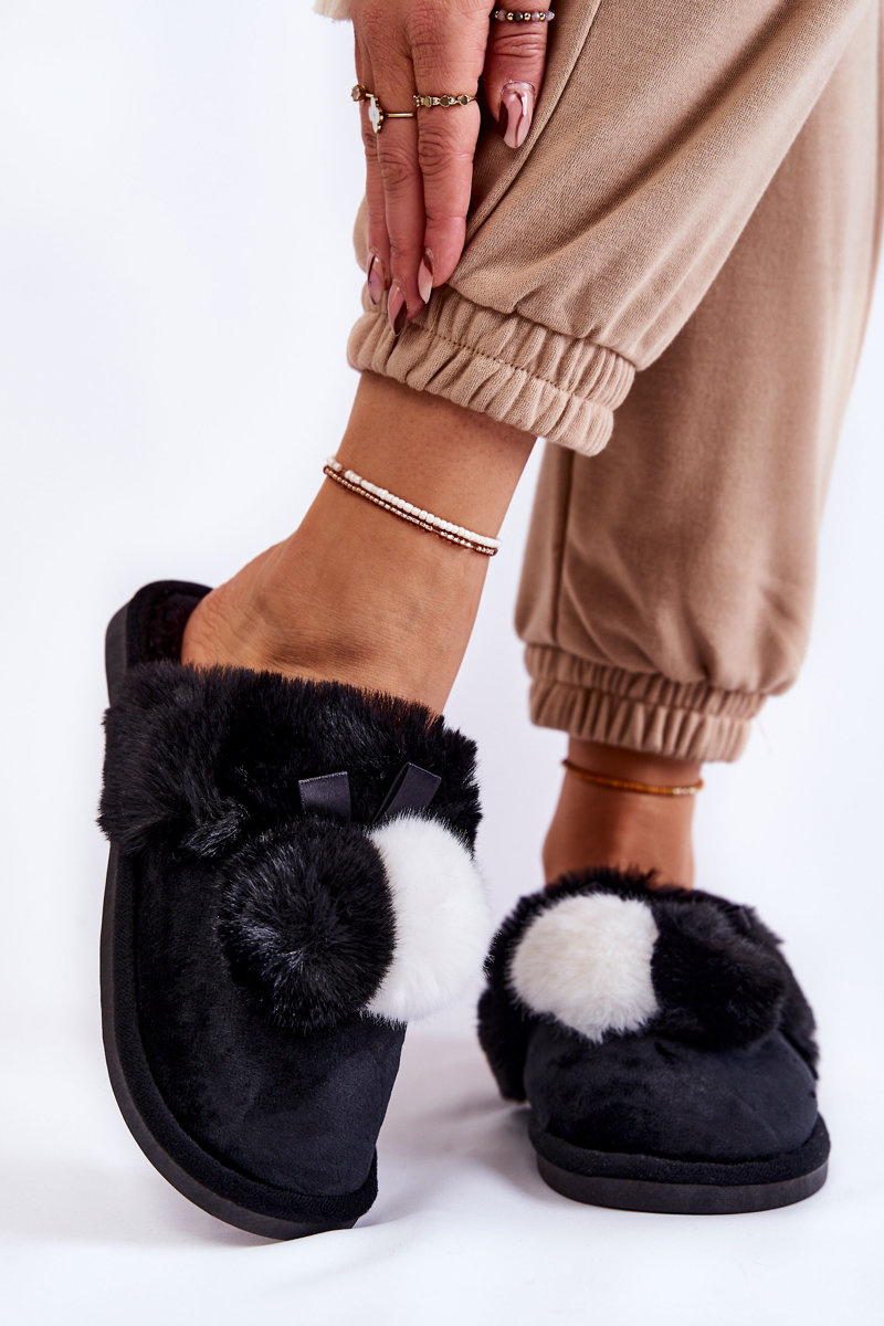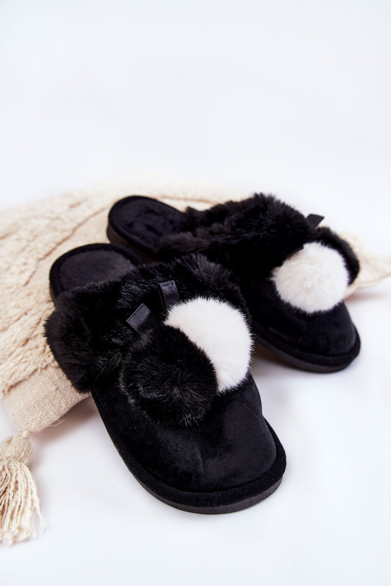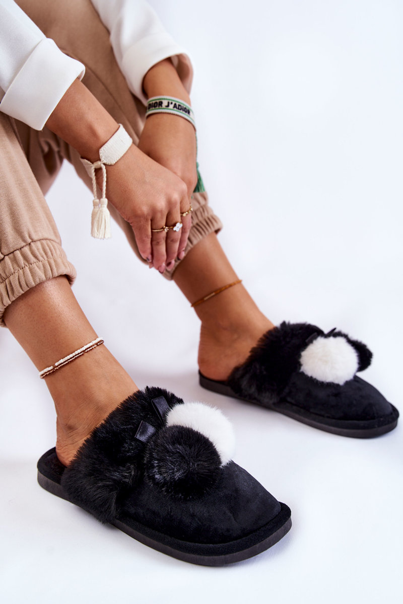 Dámske papiere s pompoms a kožušinami čiernej Sahiry