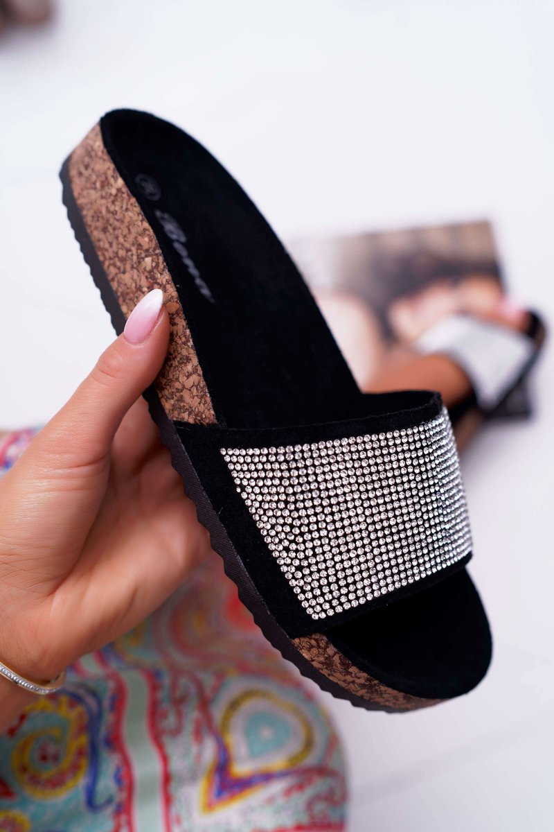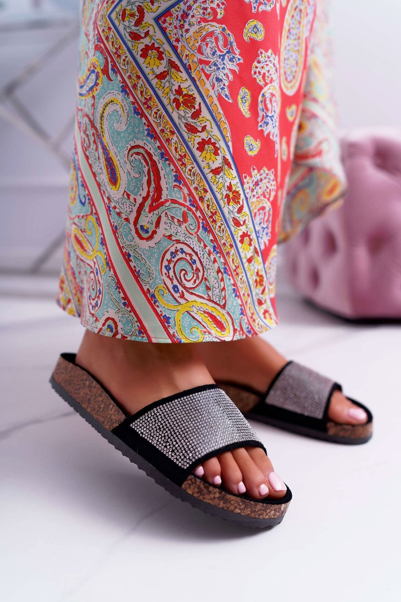 Dámske papuče korku s čiernou farbou do kryštálov!