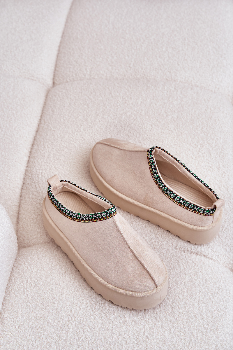 Dámske Papuče Na Platforme S Vyšívaním Svetlo Béžové Neroma