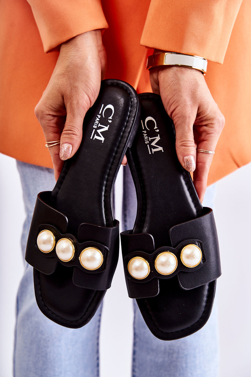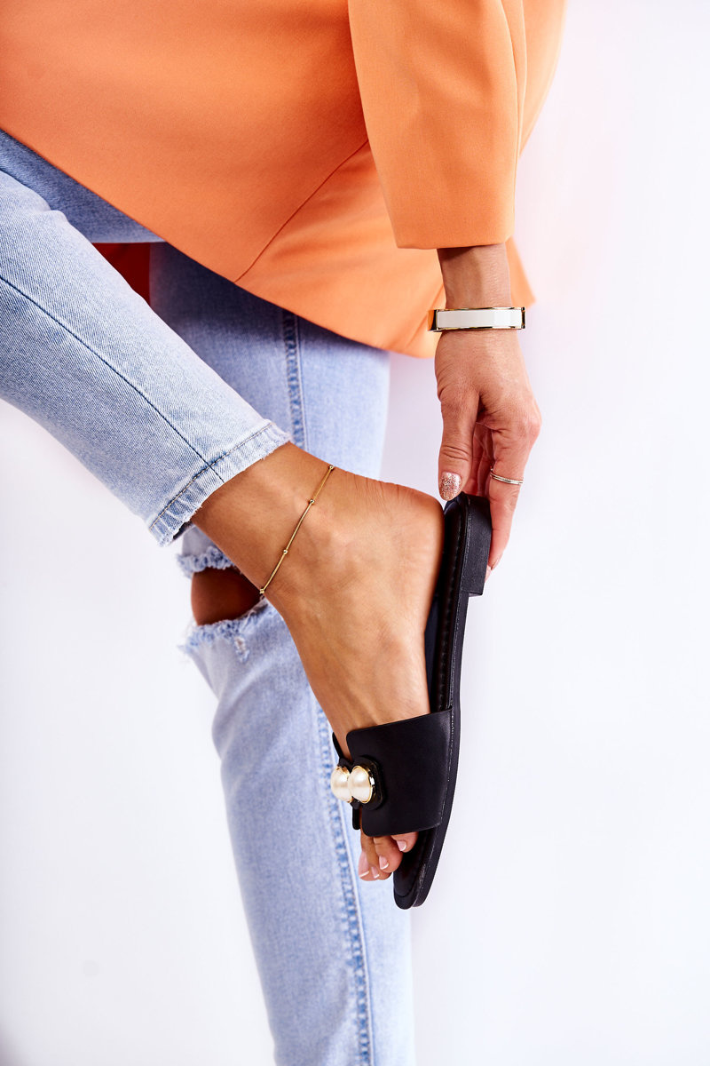 Dámske papuče s dekoratívnymi perlami čiernymi Tacoma