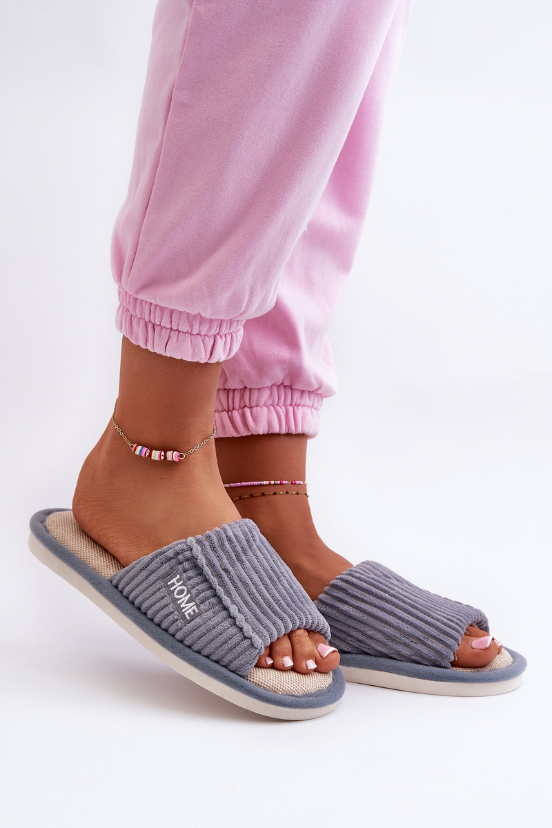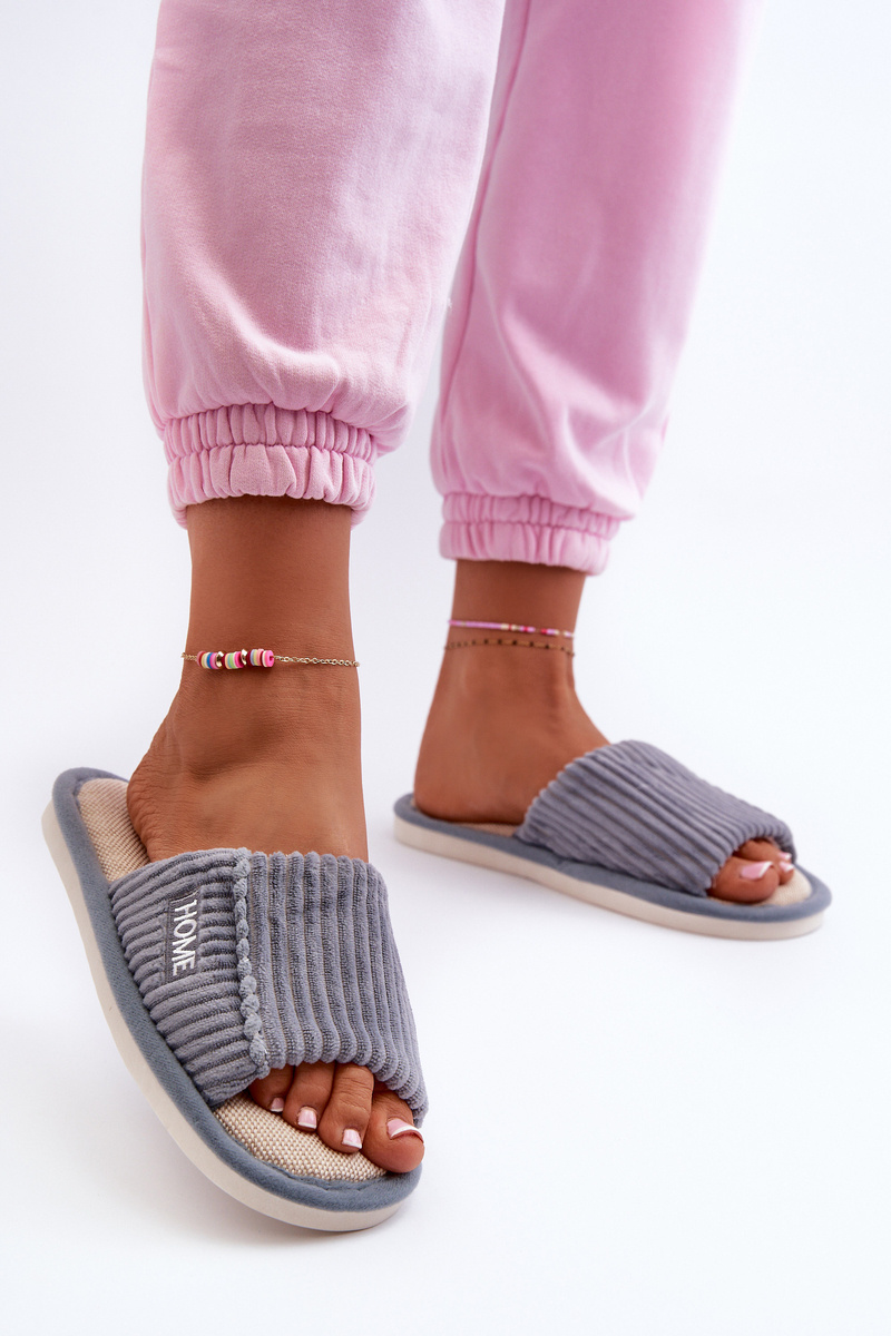 Pohodlné papuče vkĺzli so širokým podporným pásom. Postavte sa na plochú podrážku, zabezpečte stabilitu a pohodlie použitia. Vyrobené z pekného do dotykového textilného materiálu. Noski objavil. Tento model sa určite stane obľúbeným doplnkom vášho domáceho odpočinku! Pri výbere veľkosti postupujte podľa tabuľky veľkosti.