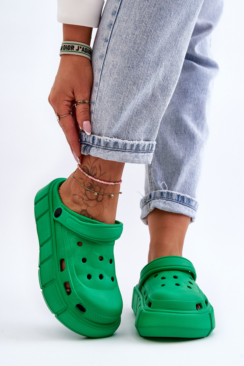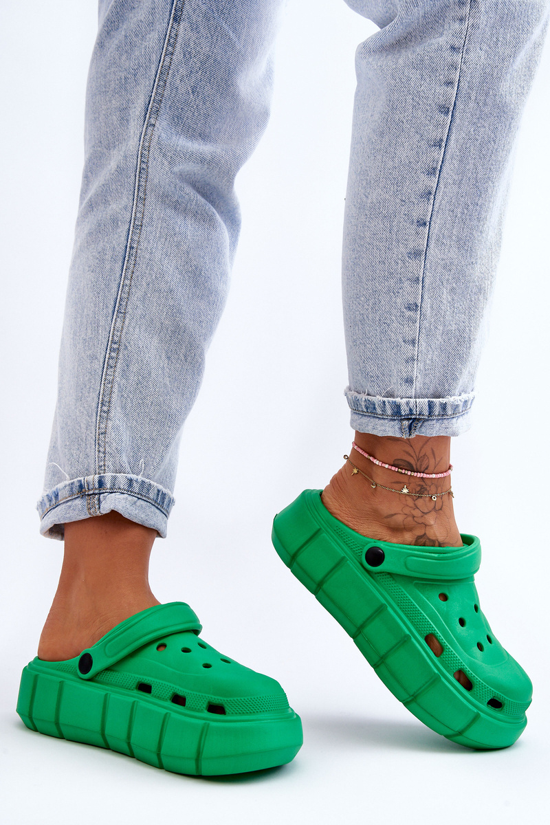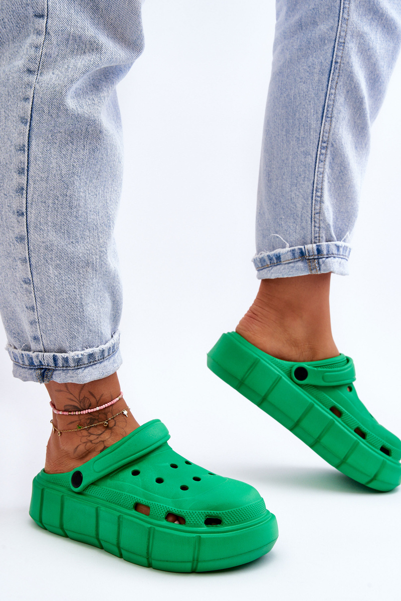 Dámske žabky žabky sú vyrobené z penového plastu. Pohyblivý popruh chráni pred pohybom chodidla. Topánky boli zabudované na masívnej plošine. Ideálny model pre prácu v záhrade alebo používanie doma namiesto pápežstva. Otvory v hornej časti umožňujú správne vetranie obuvi, ktoré funguje skvele počas teplejších dní. Pri výbere veľkosti navrhnite tabuľku veľkosti.
