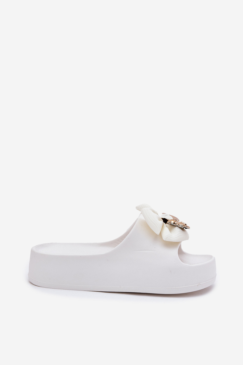 Dámske Pěnové Pantofle Na Platforme S Mašľou A Brošňou Biele Marlize