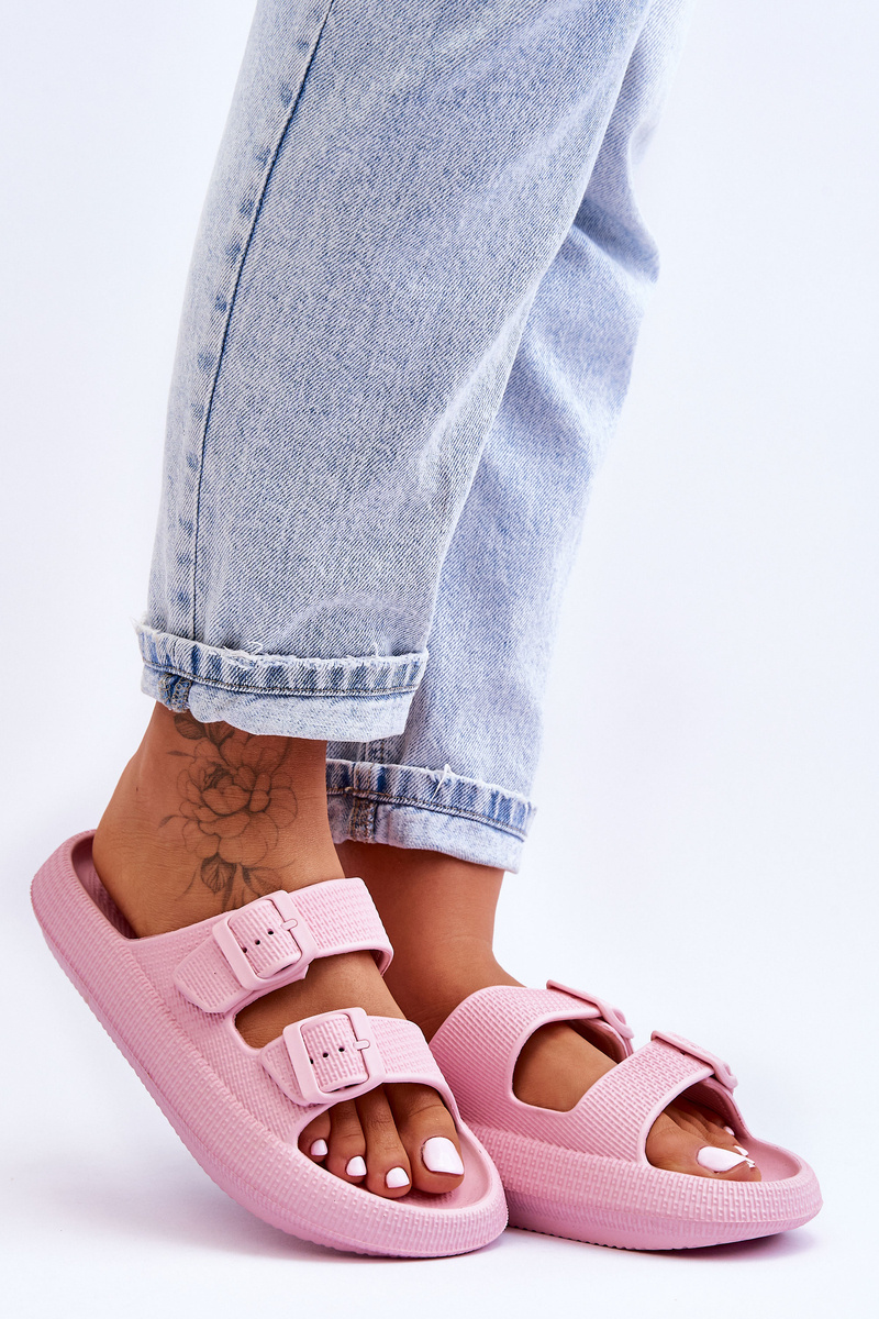 Dámske penové žabky s ružovými sharmenovými pruhmi