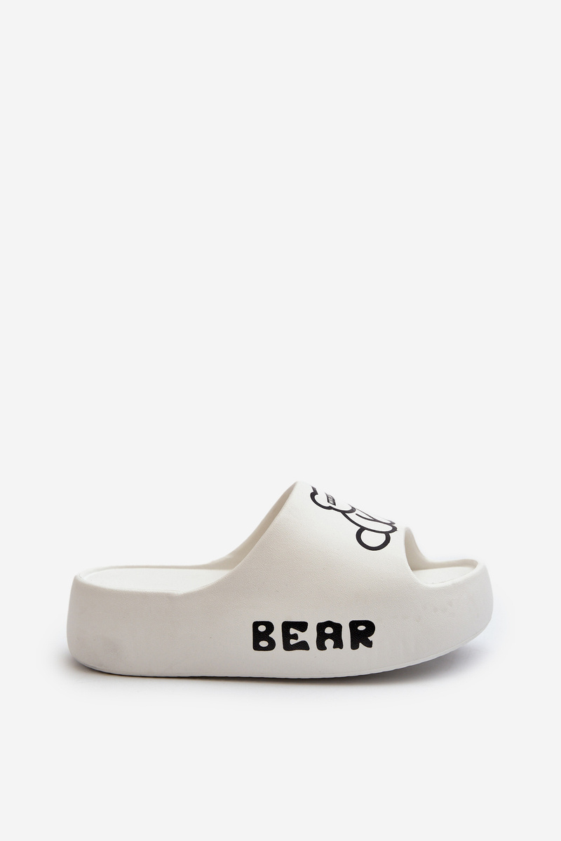 Dámske peny papuče na masívnej podrážke s medveďom biela Lamira