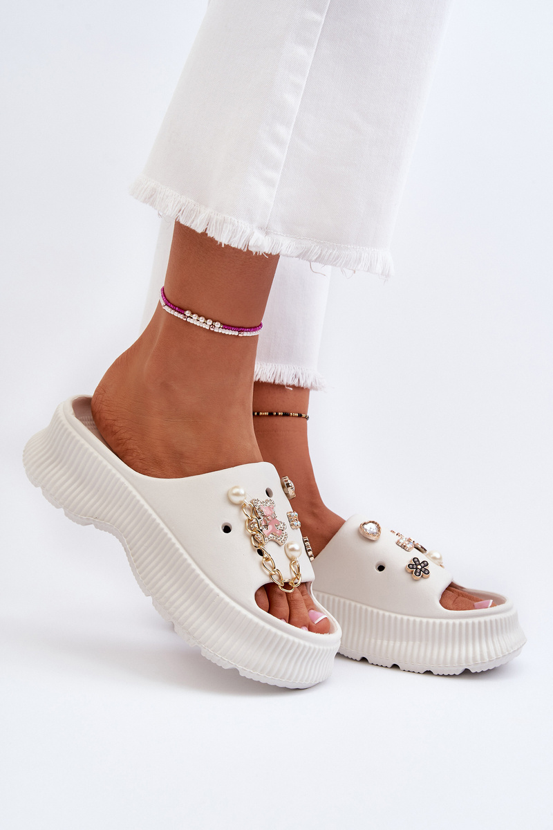 Ľahké dámske papuče vyrobené z peny, čo z nich robí mimoriadne pohodlnú obuv. Okrem toho sú zdobené detailmi, ktoré im dodávajú eleganciu a štýl. Nastavené na hrubej podrážke poskytujú stabilitu a pohodlie počas nosenia. Ideálne na letné dni, sú vynikajúcou voľbou pre tých, ktorí ocenia pohodlie a štýlový vzhľad. Při výběru velikosti se řiďte tabulkou velikostí.