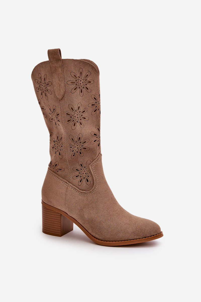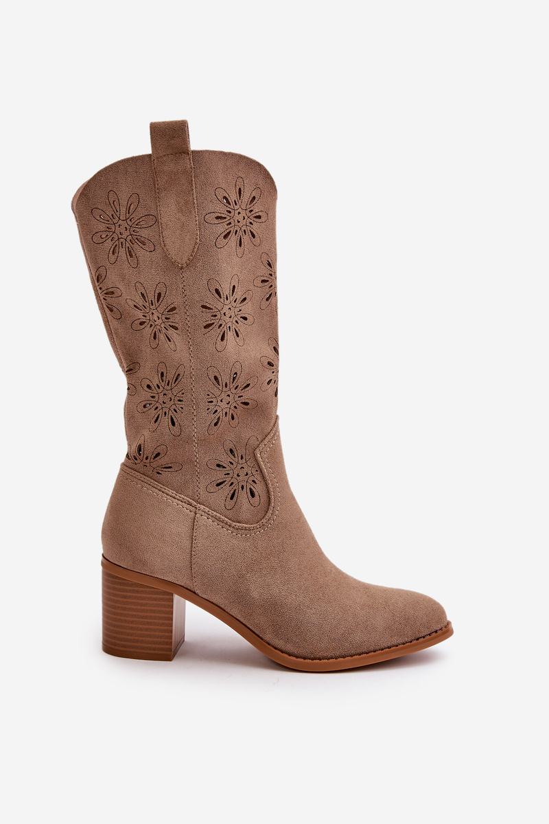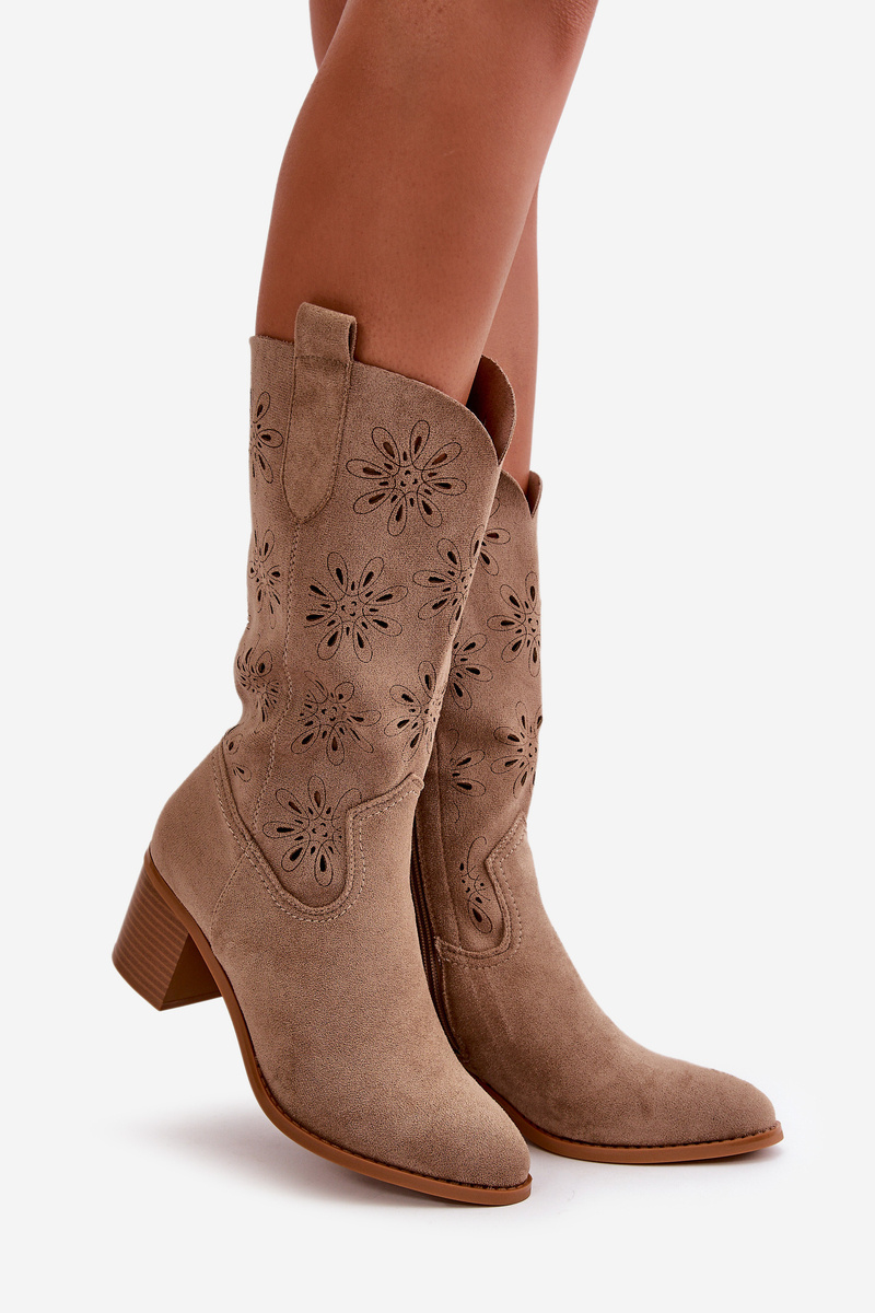 Dámske Perforované Čižmy Po Koleno Z Eko Semišu Béžové Nevilos