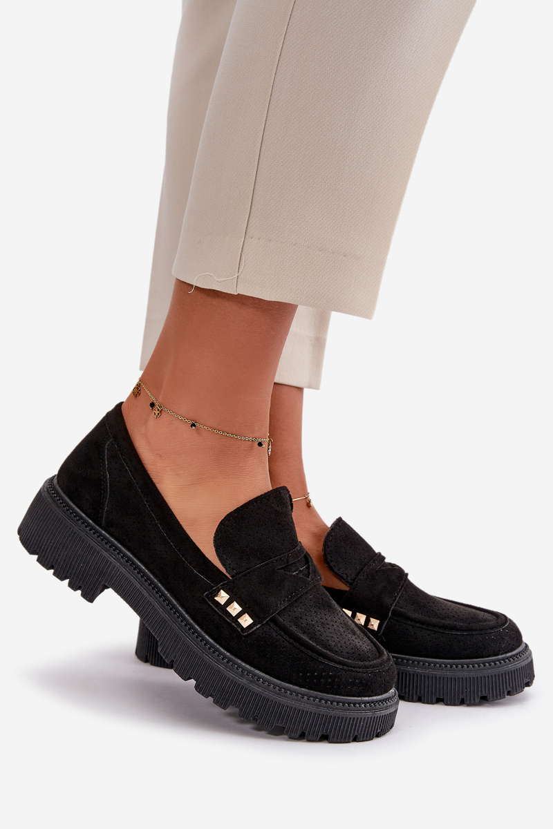 Dámske mokasíny vyrobené z eko semišu. Umiestnené na plochom podpätku a platforme, poskytujú pohodlie pri nosení počas celého dňa. Špičky sú zaoblené, čo im dodáva klasický vzhľad. Tento model je nielen módny, ale aj praktický vďaka perforovanej vrchnej časti, ktorá umožňuje nohe dýchať. Tieto mokasíny sú ideálne ako pre každodenné, tak aj pre elegantnejšie štýly! Při výběru velikosti se řiďte tabulkou velikostí.