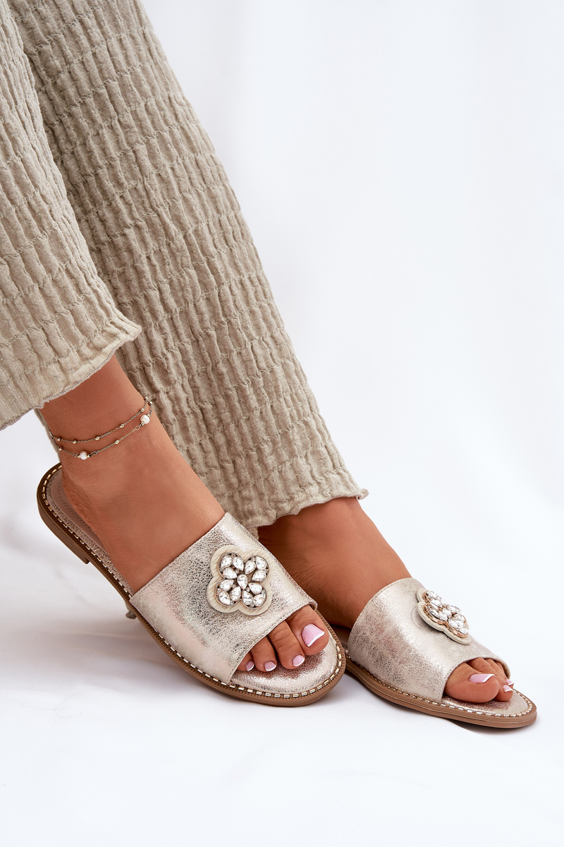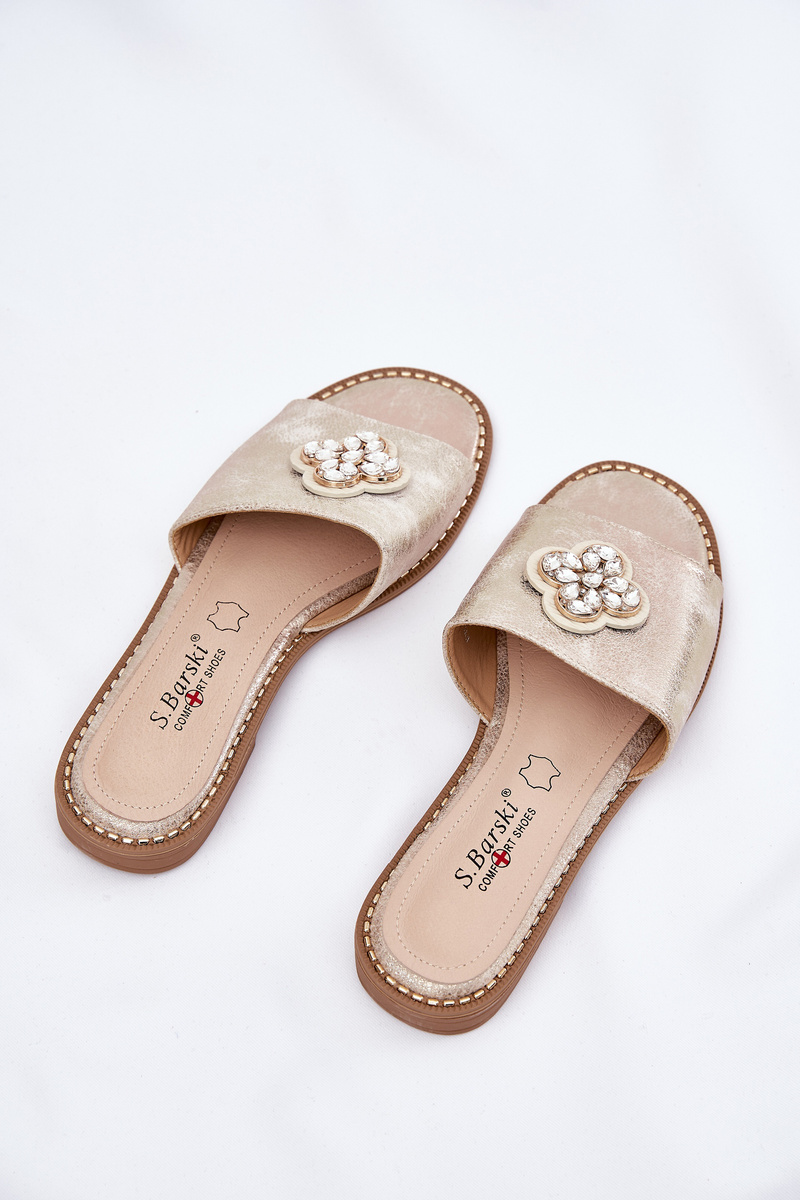 Dámske Plátené Sandále S Dekoratívnym Detailom S.Barski KV51-087 Zlaté