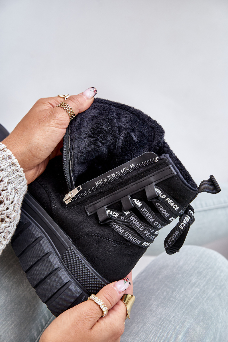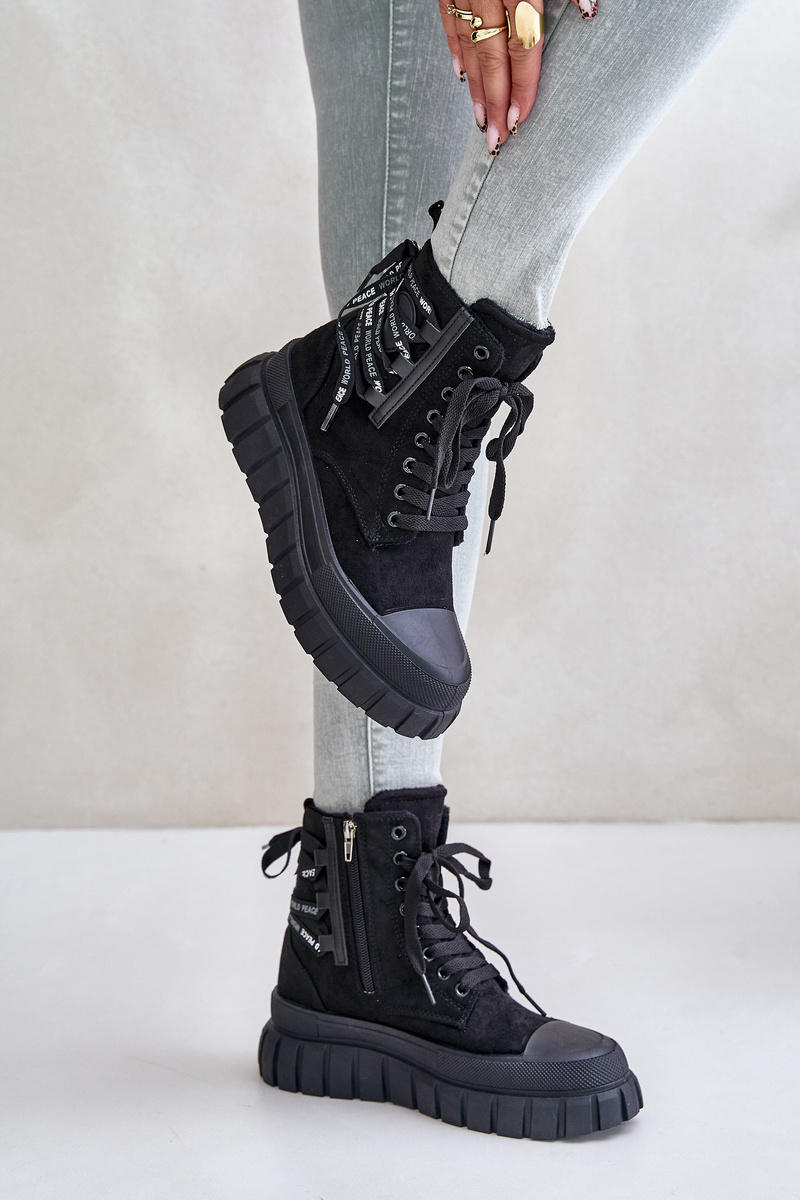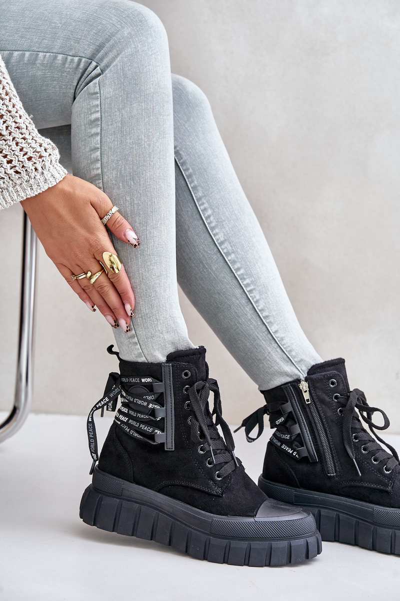 Dámske Platformové Čižmy S Dekoratívnym Šnurovaním Čierne Edidda