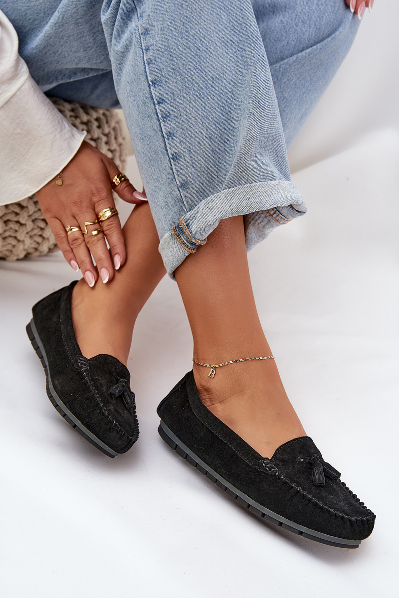 Dámske Ploché Klasické Semišové Mokasíny S.Barski LR51-548 Čierne