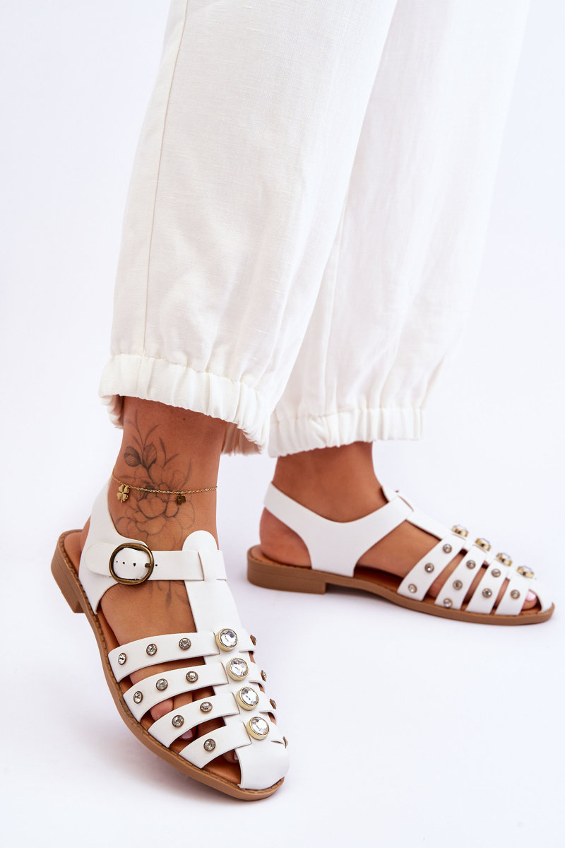 Dámske ploché sandále s bielymi ascotovými zirkónmi
