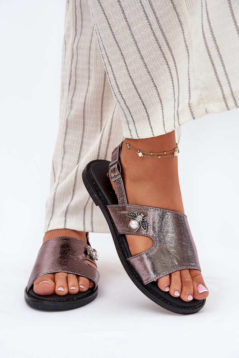 Dámske Ploché Sandále S Dekoratívnym Detailom Strieborné Vinceza 17378