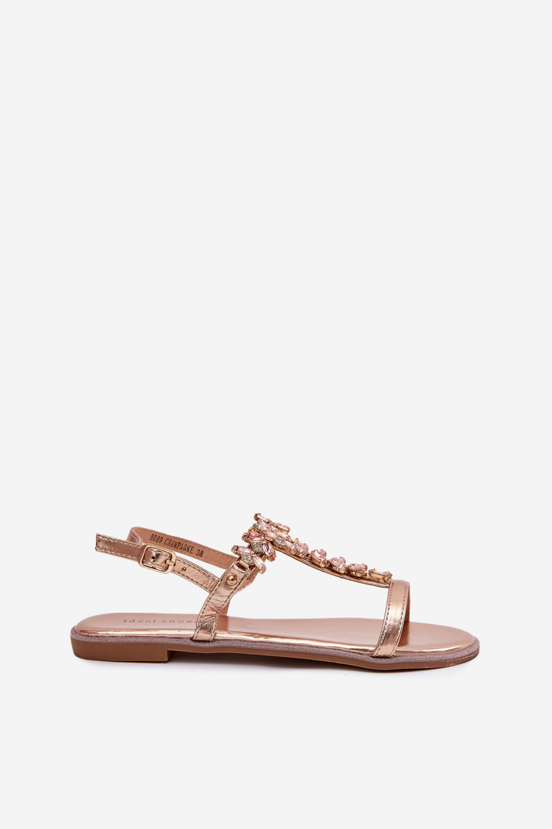 Dámske Ploché Sandále S Kryštálmi Rúžové Zlato Saane