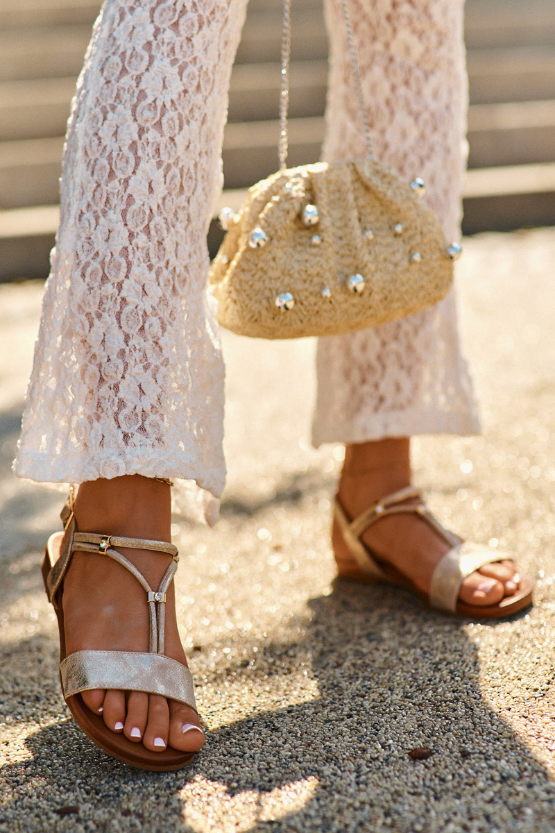 Ploché dámske sandále vyrobené z kvalitnej ekokože. Zavretie na nastaviteľný popruh s pripevnením na sponu zabezpečuje ideálne prispôsobenie a pohodlie pri nosení. Ideálne na teplé dni, kombinujú štýl s funkčnosťou, skvele sa hodia na každodenné prechádzky aj na elegantnejšie príležitosti. Při výběru velikosti se řiďte tabulkou velikostí.