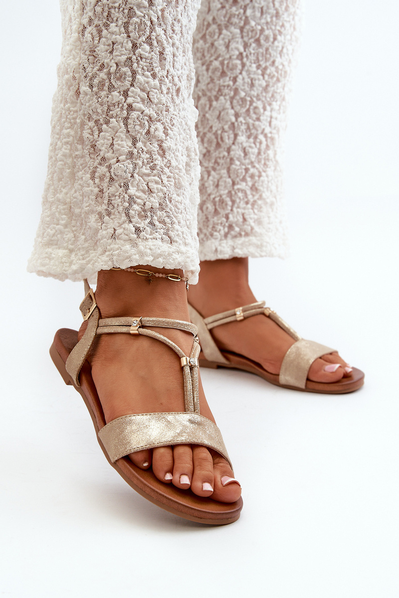 Dámske Ploché Sandále S Páskami S.Barski KV27-010 Zlaté