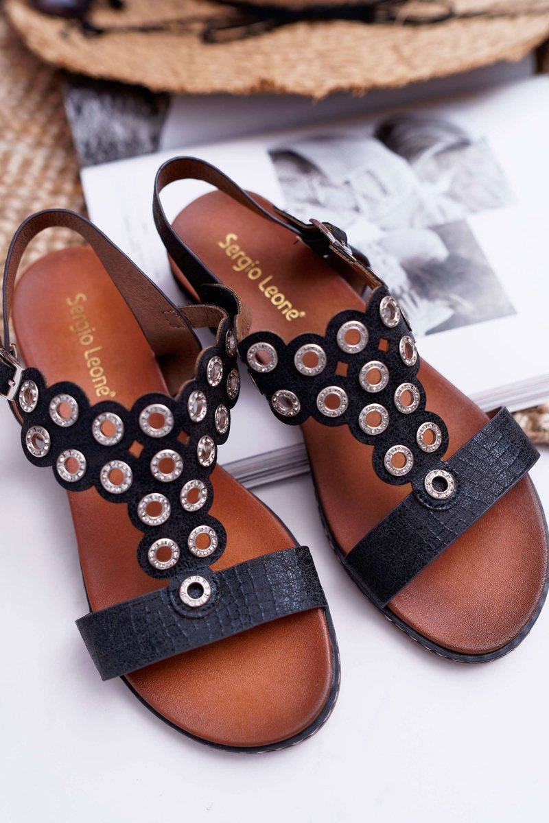 Dámske ploché sandále Sergio Leone SK012 Čierny Livian