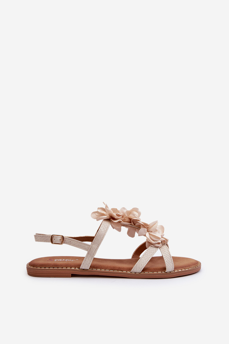 Dámske ploché sandále zdobené kvetmi béžové Abidina
