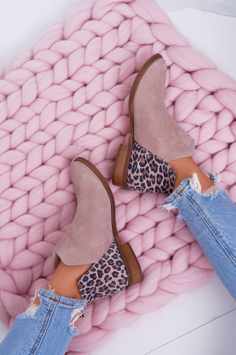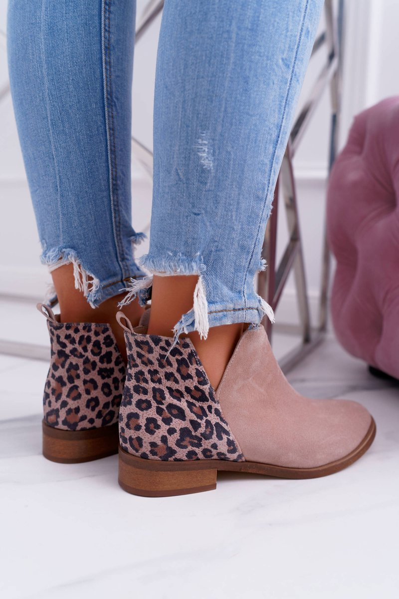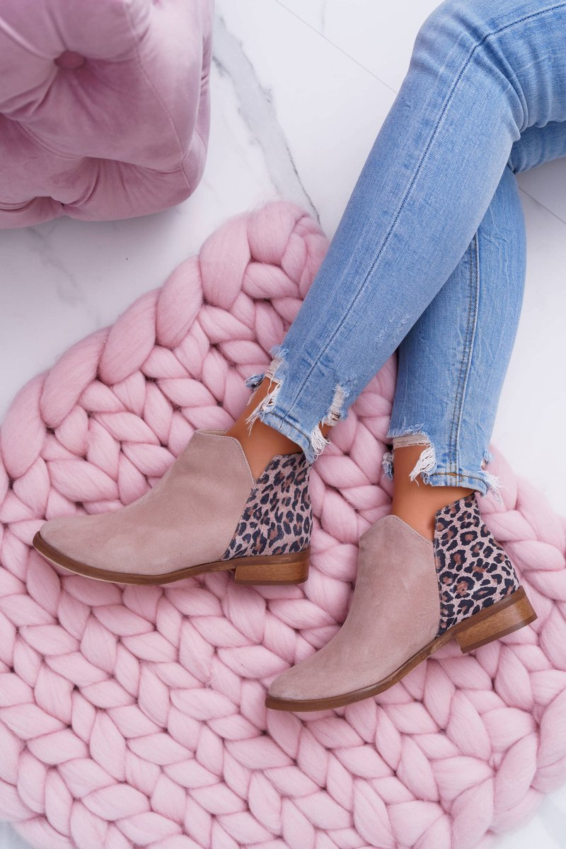 Boots nie sú len topánky pre chladné dni. Sú tiež skvelé pri vytváraní stylizovania jari. Topánky majú jemné výrezy vo výške členkov. Plochá päta a vzor leoparda, ktorý sa v tejto sezóne stal veľmi módnym. Čižmy sú úplne vyrobené zo semišovej kože. Poľský produkt, ktorý nám zaručuje pohodlie a vysokú kvalitu. Ideálne pre vzdušné šaty a džínsové nohavice. Pri výbere veľkosti navrhnite tabuľku veľkosti.
