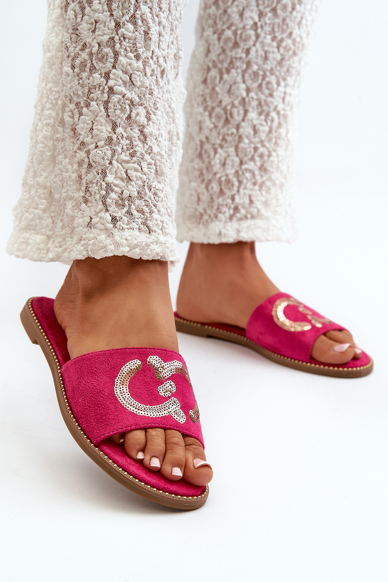 Dámske ploché žabky S cekinami S.Barski KV27-052 Fuksia