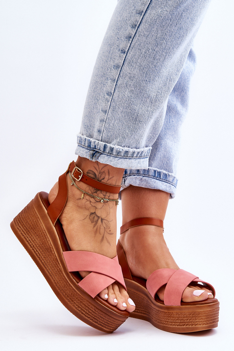 Klasické dámske sandále boli zabudované na klin a platformu. Tento model má vpredu dva križovatky. Mäkká ekorálna kožená vložka zabezpečí pohodlné použitie obuvi. Sandále majú platformu zdobenú napodobňovaním vrkočov. Pripevnený nastaviteľným pásom s prackou. Pri výbere veľkosti navrhnite tabuľku veľkosti. p>