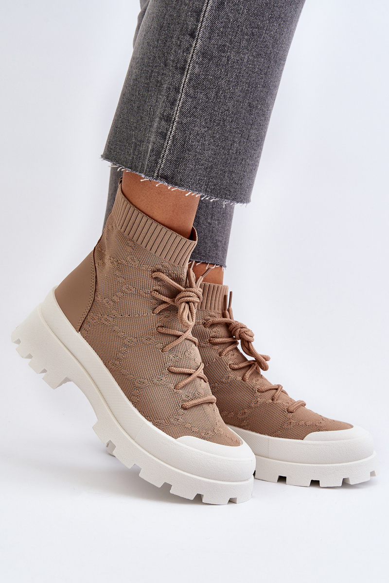 Dámske Ponožkové Nazúvacie Čižmičky Hnedé Solime