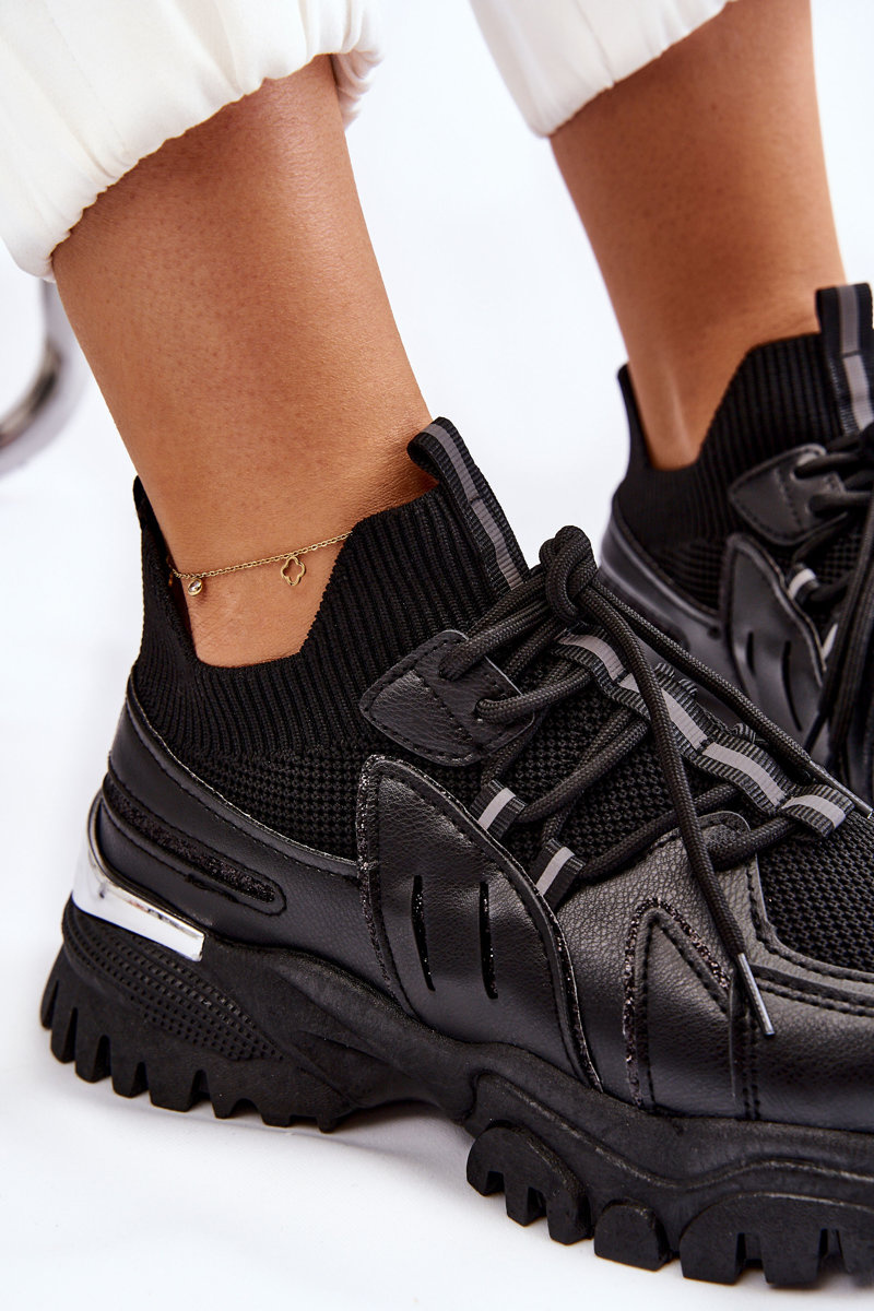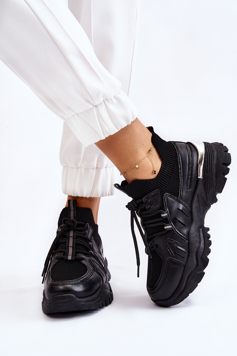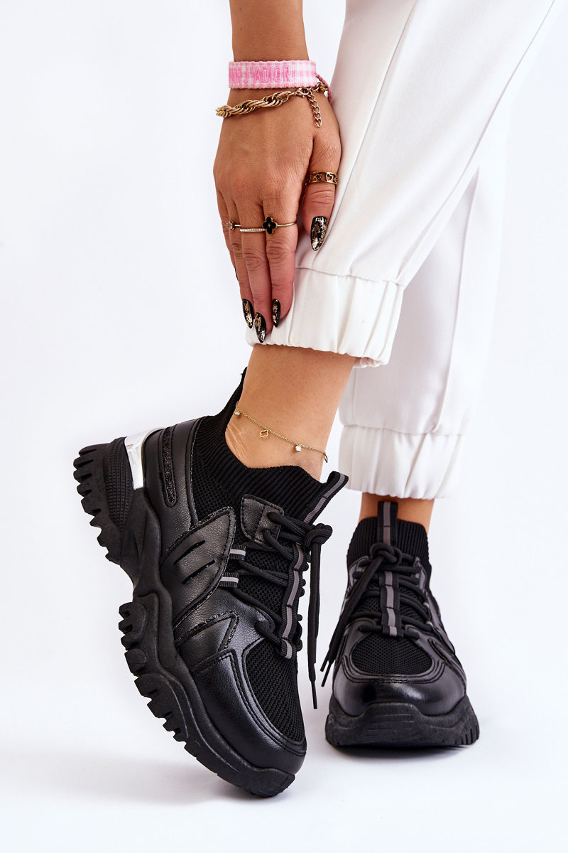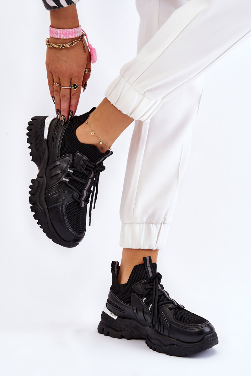 Športové topánky boli vyrobené z kombinácie ekologickej kože a textilného materiálu. Model skĺzol s ďalším šnurovaním. Topánky boli zabudované na masívnej plošine s plochou pätou a drážkami. Mäkká vložka zabezpečí pohodlné použitie obuvi. Mali by ste ich mať! Pri výbere veľkosti navrhnite tabuľku veľkosti.