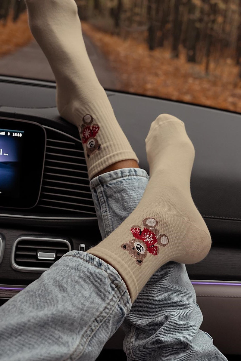 Dámske Ponožky Medveď v Svetri Béžové