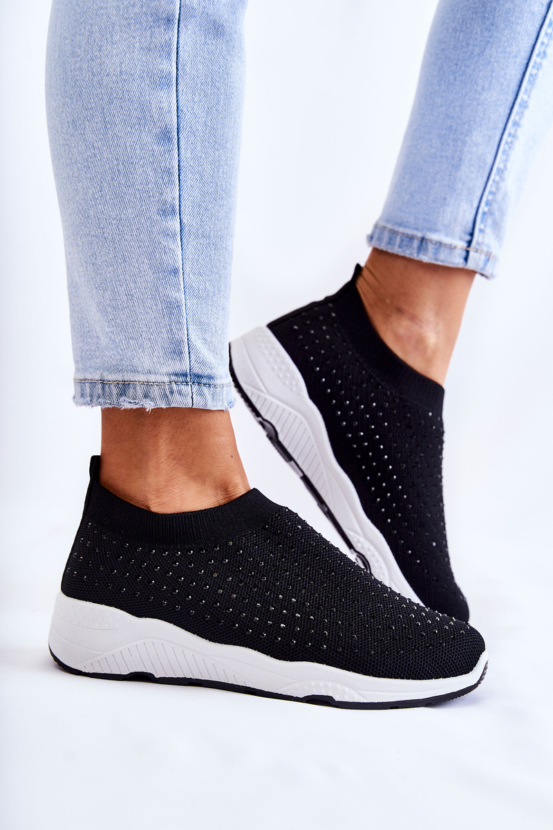 Dámske posuvné športové topánky s čiernymi zirkónmi Calsey