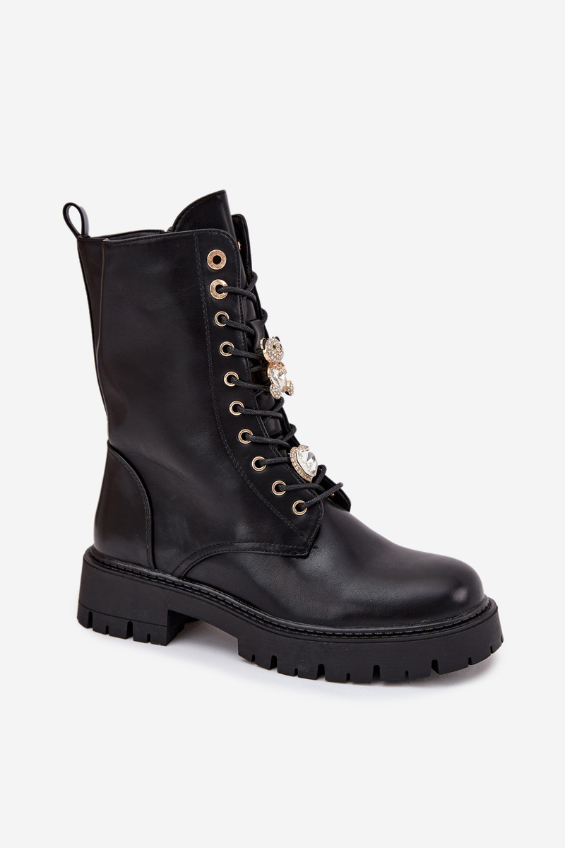 Dámske Pracovné Čižmy S Pripínakmi Zateplené Čierne Lomina