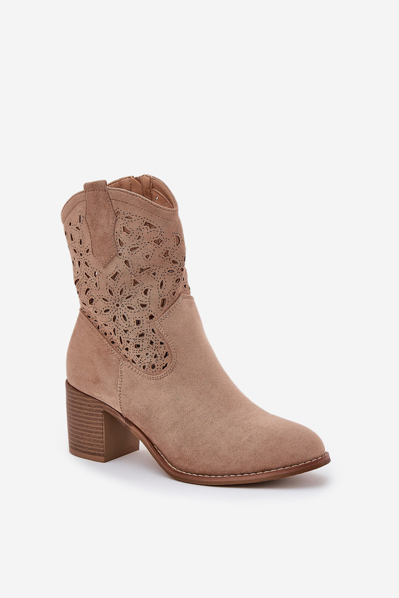 Štýlové dámske čižmy vyrobené z vysoko kvalitného eko semišu. Umiestnené na stabilnom blokovom podpätku. Tento model vyniká perforovaným vzorom na hornej časti. Hroty sú mandľového tvaru. Zapínanie na zips zabezpečuje pohodlie a ľahké obúvanie. Ideálne na rôzne príležitosti, tieto čižmy budú štýlovým doplnkom vašej jarnej garderóby. Při výběru velikosti se řiďte tabulkou velikostí.
