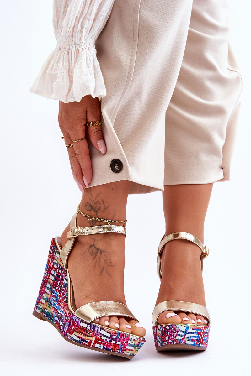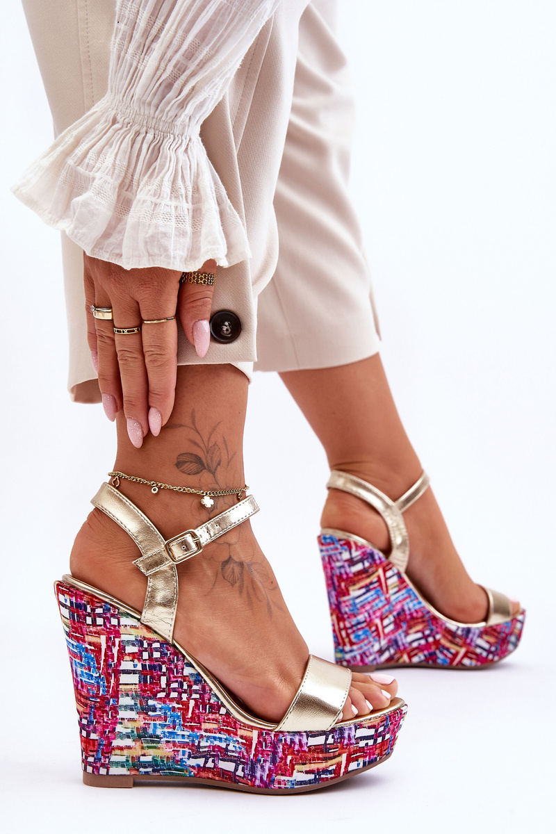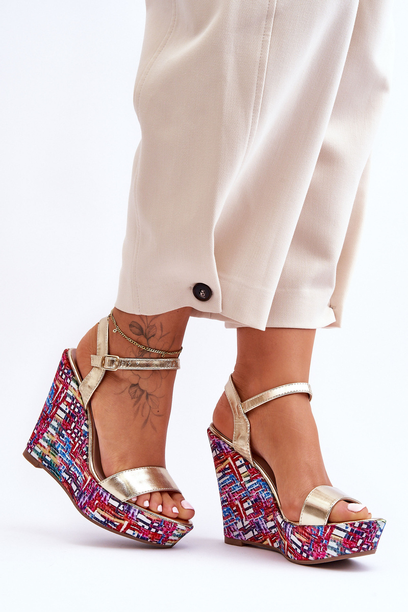 Dámske sandále boli vyrobené z kombinácie ekologickej kože a textilného materiálu. Tento model má klasické upevnenie na pracke s nastaviteľným pásom. Mäkká vložka sa počas používania postará o vaše pohodlie. Sandále boli vložené na vysoký klin a plošinu. Okrem toho je podrážkou guma a nekripcia. Pri výbere veľkosti navrhnite tabuľku veľkosti.