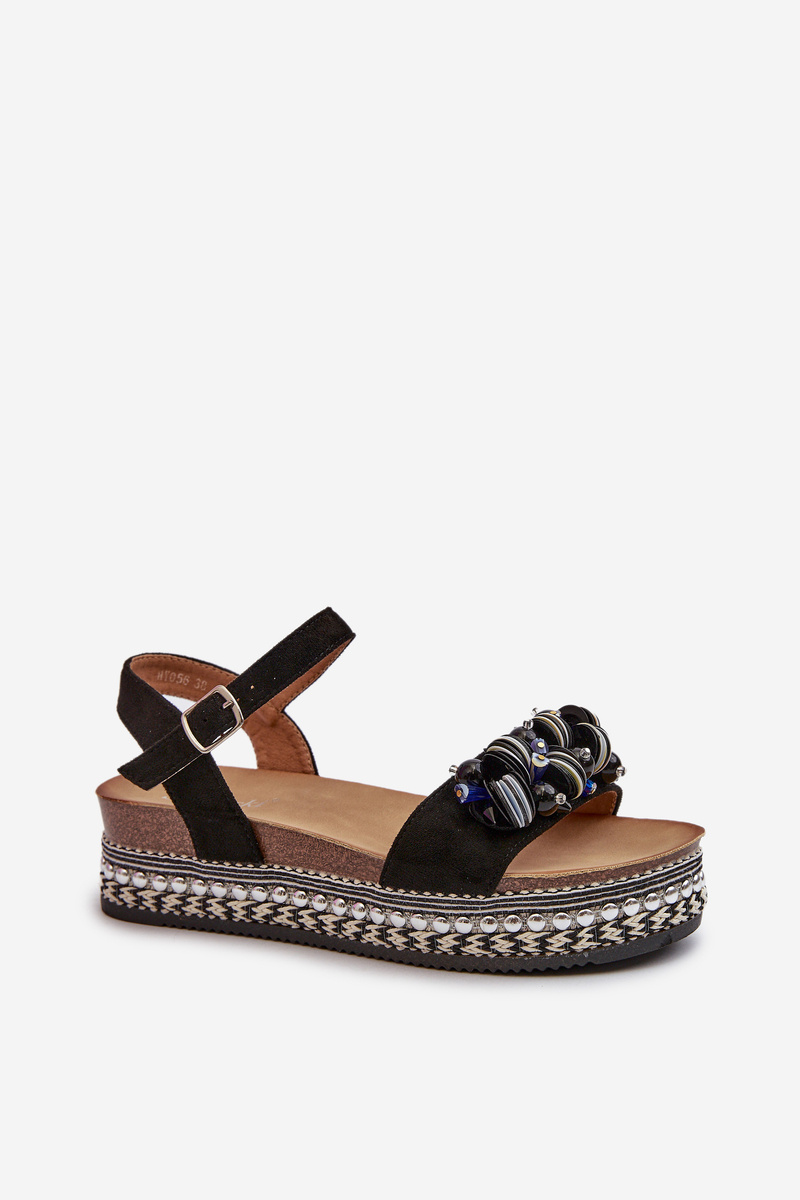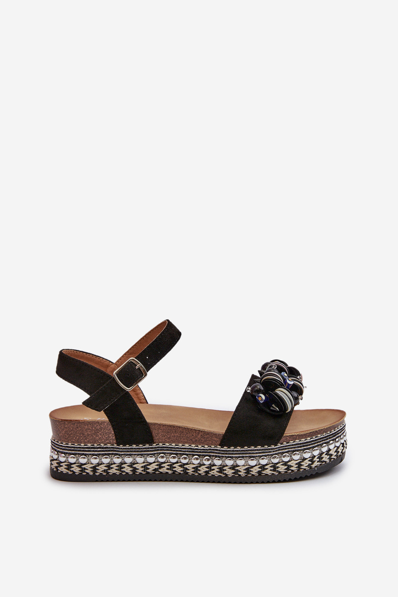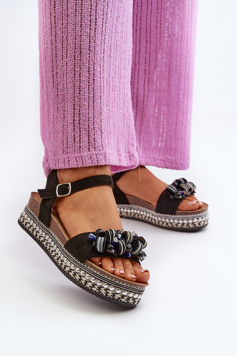 Dámske sandále na klinčeku a platforme s ozdobami S.Barski HY056 Čierne