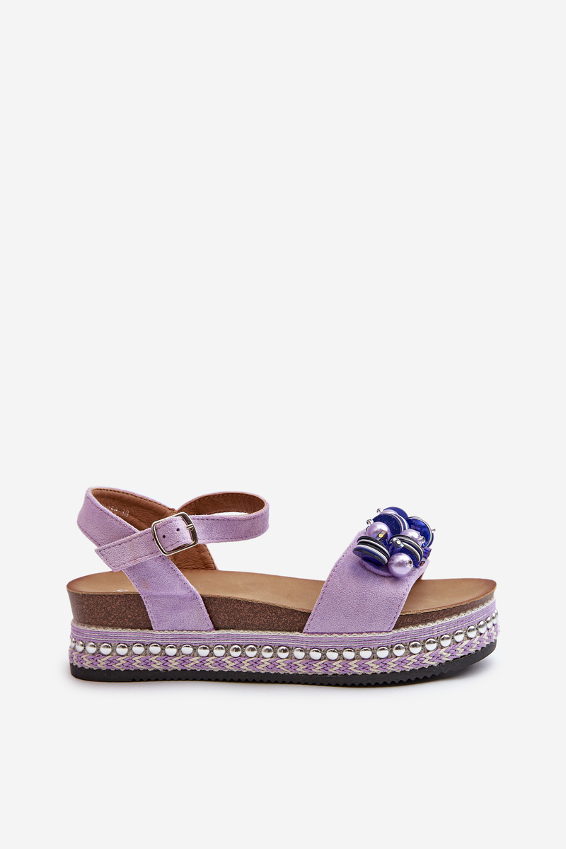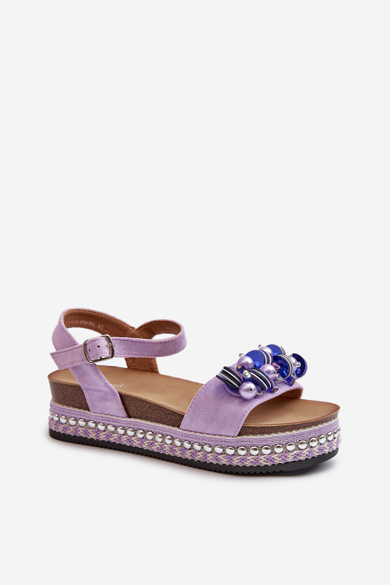 Dámske sandále na klinčeku a platforme s ozdobami S.Barski HY056 fialové