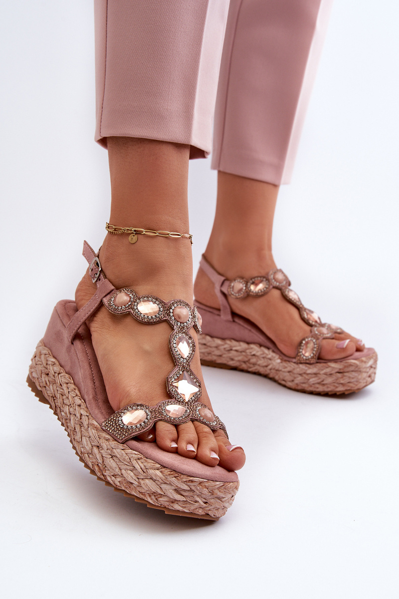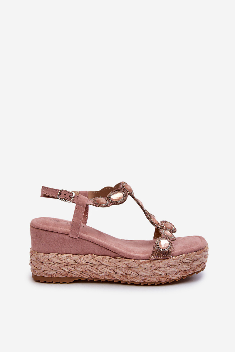 Dámske sandále na klinčeku s pletením S.Barski MY291 Ružové