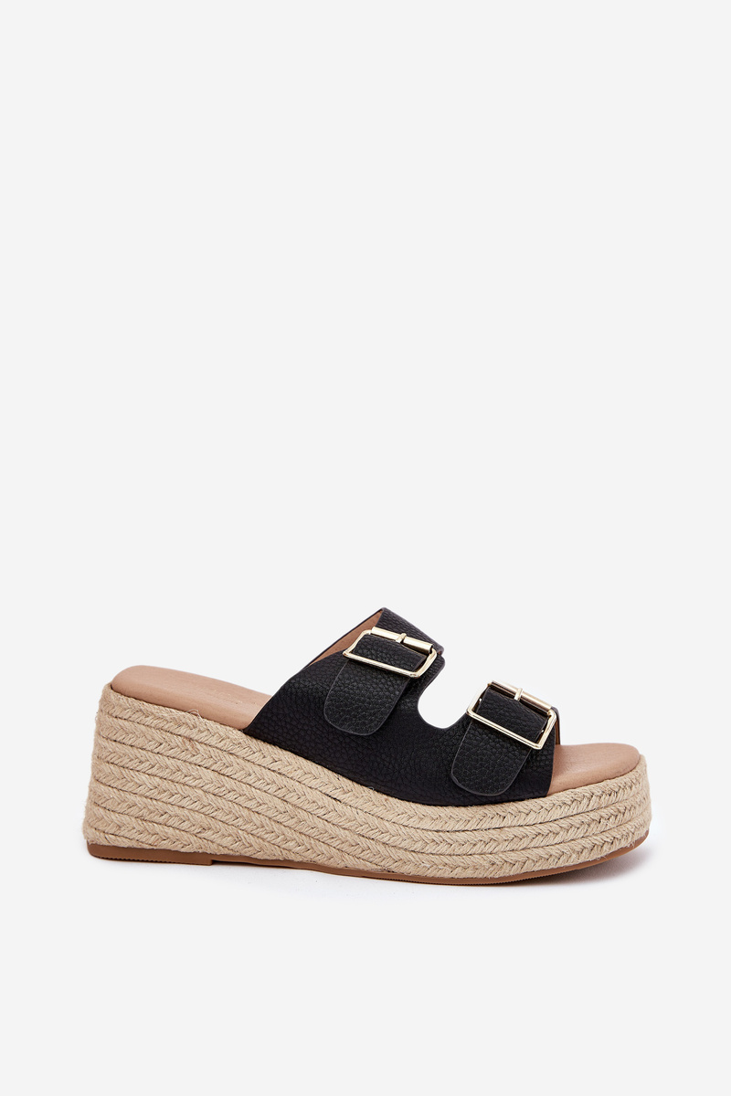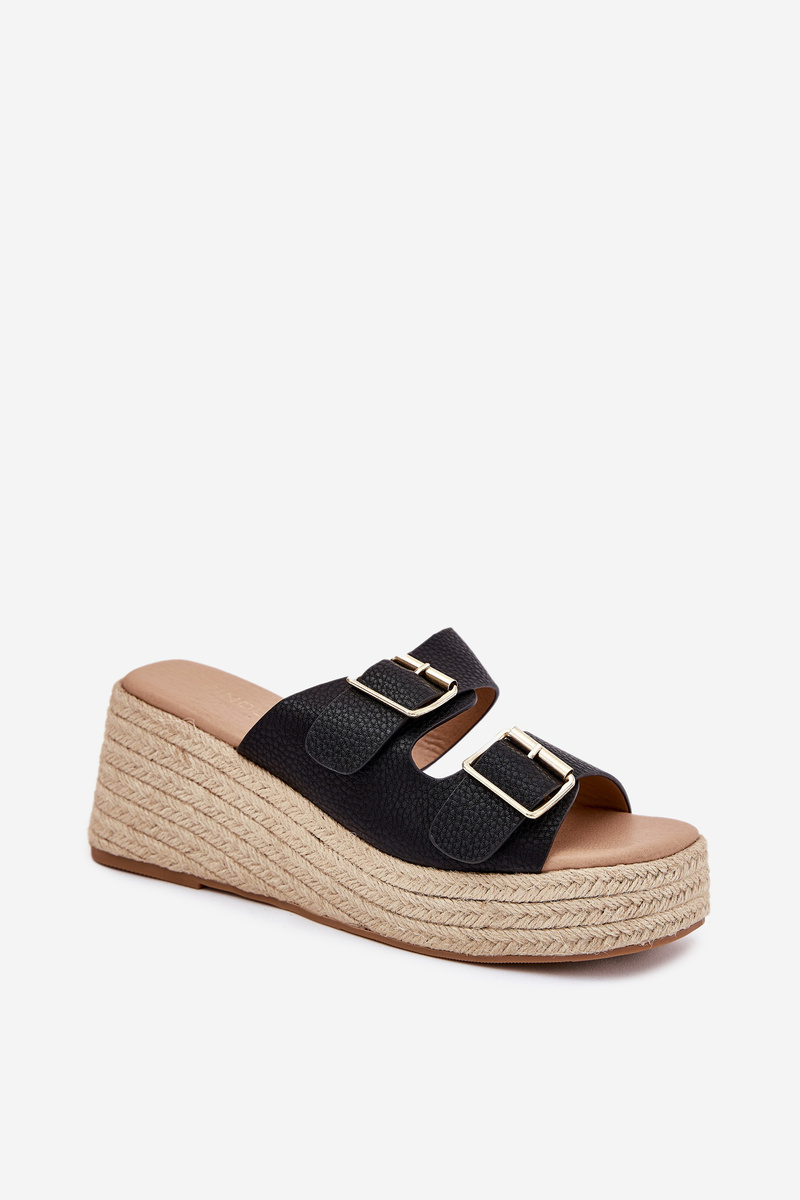 Dámske Sandále Na Klíne S Pletením A Prackami Čierne Pasinea