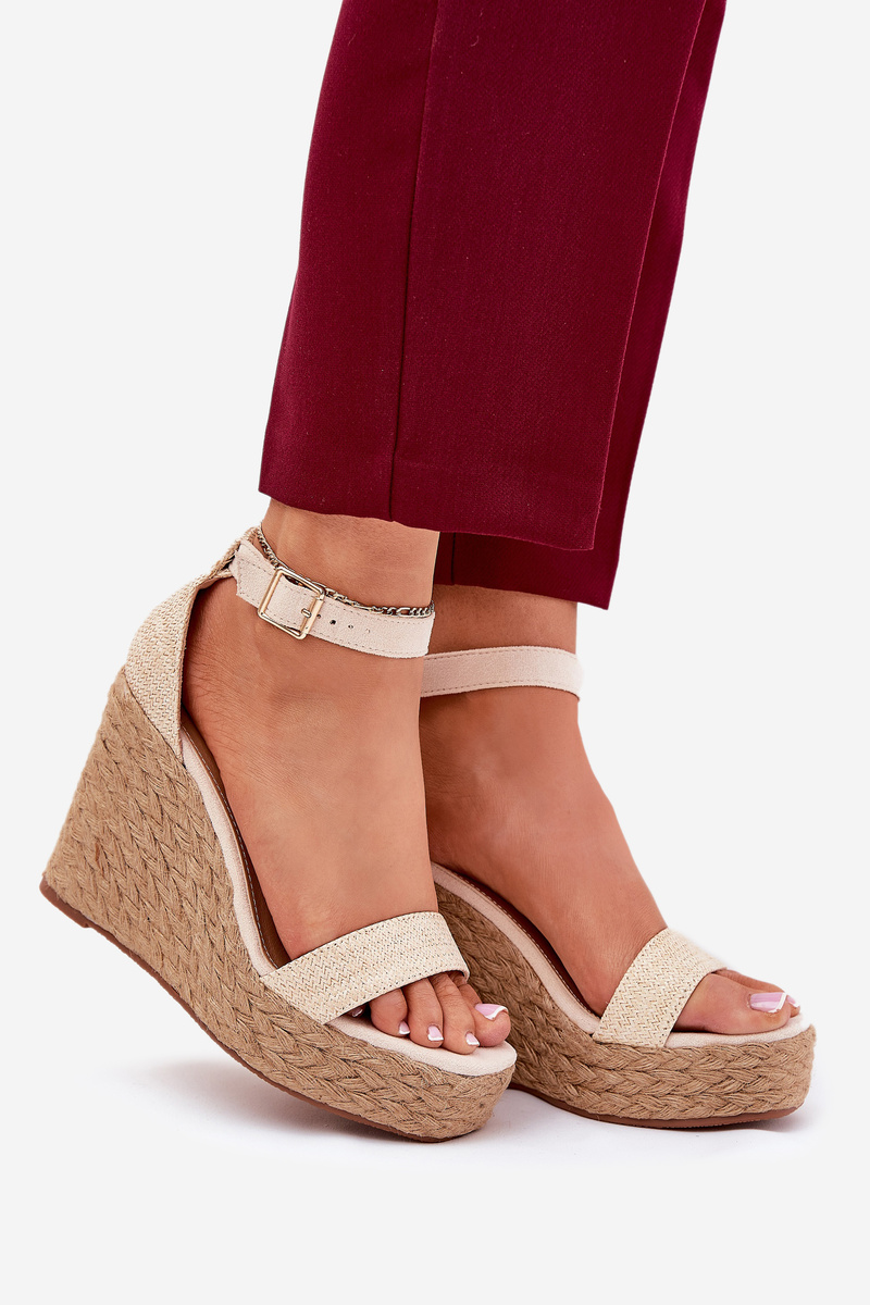 Dámske Sandále Na Klíne S Pleteninou Béžové Adelio