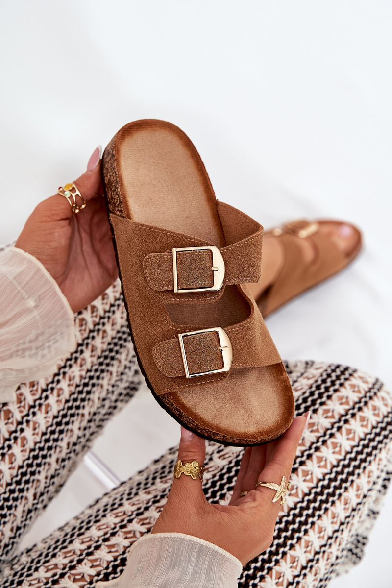Štýlové dámske šľapky na korkovej platforme, ktoré kombinujú pohodlie s módnym vzhľadom. Vpredu sa nachádzajú dva popruhy s prackami, ktoré zabezpečujú dokonalé prispôsobenie. Profilovaná eko semišová stielka zaručuje komfort po celý deň. Tieto šľapky budú skvelou voľbou na letné dni a perfektne sa hodia k šatám, sukniam a nohaviciam. Při výběru velikosti se řiďte tabulkou velikostí.