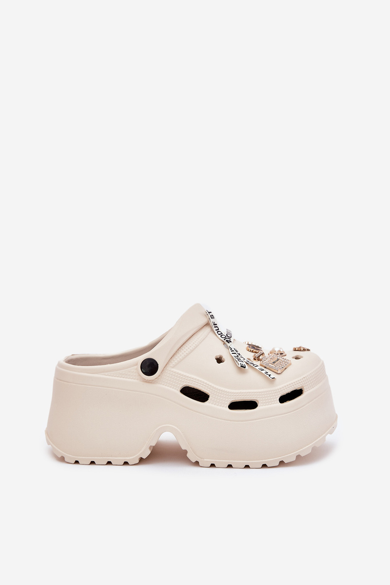 Dámske sandále na masívnej platforme s ozdobami béžové Vivira