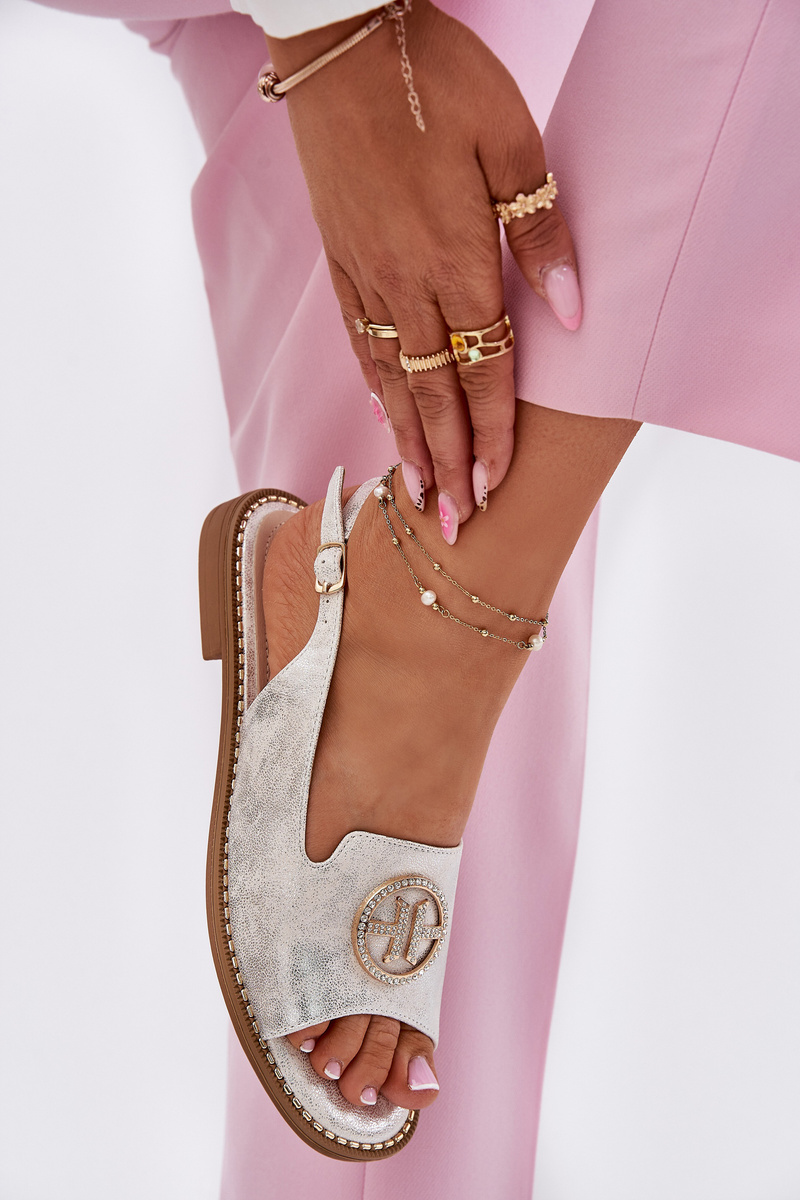 Dámske Sandále Na Nízkom Opätku S Ozdobou S.Barski KV51-002 Strieborné