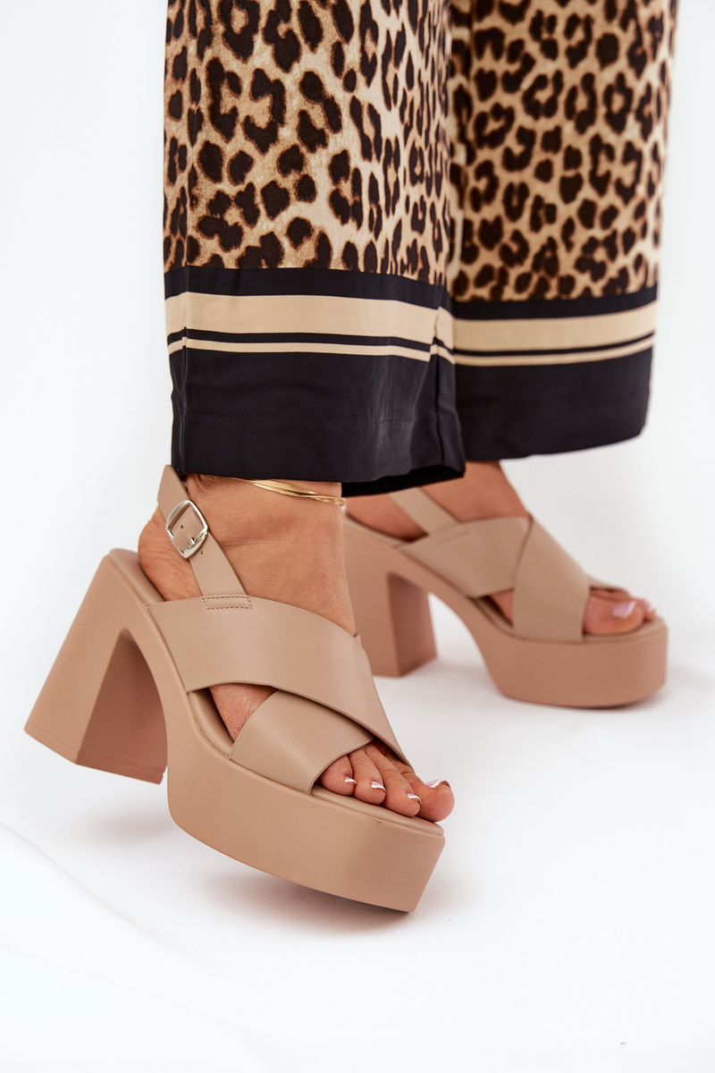 Dámske Sandále Na Opätku A Platforme Z Eko Kože Khaki Annavin
