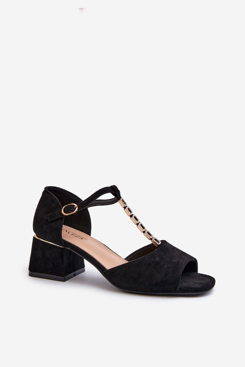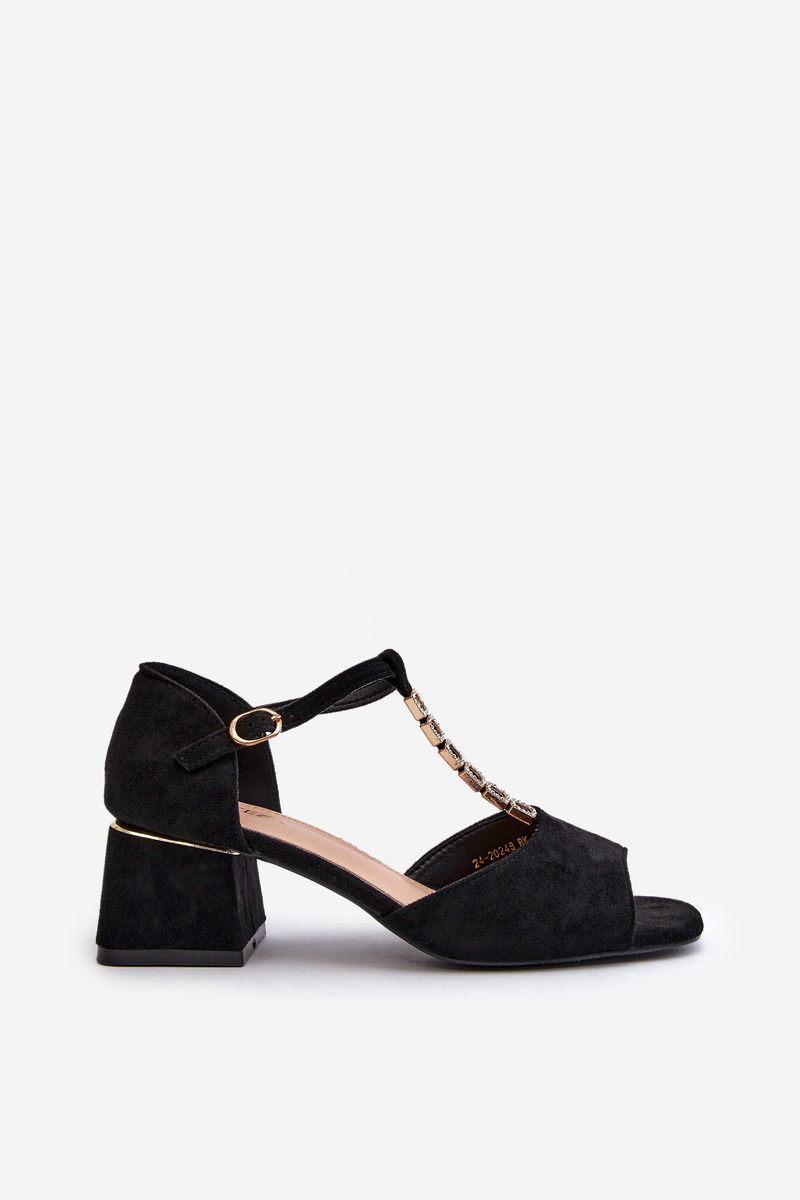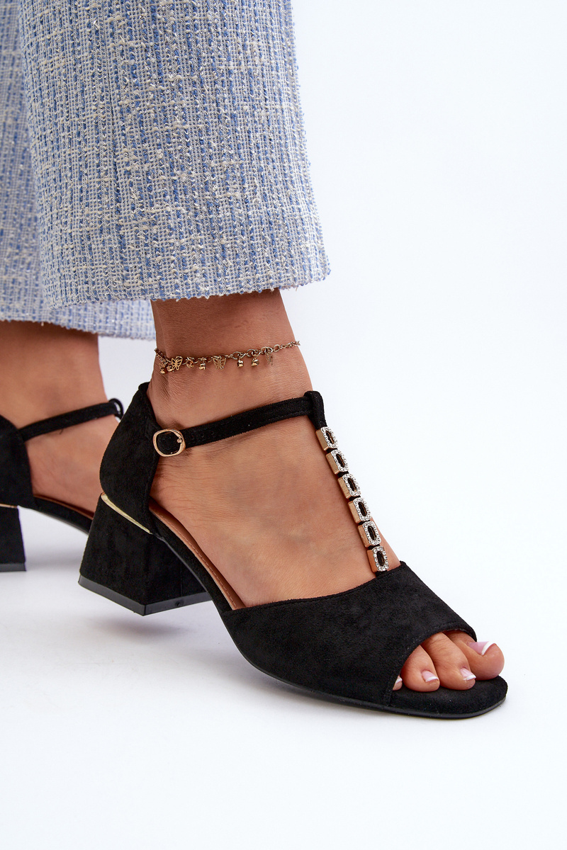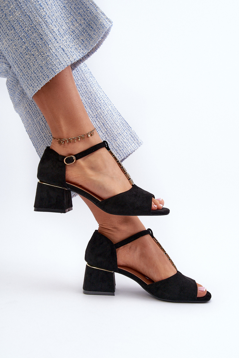 Dámske sandále na opätku s ozdobným remienkom z eko-zamšu čierne Obivena