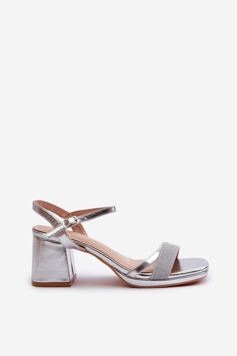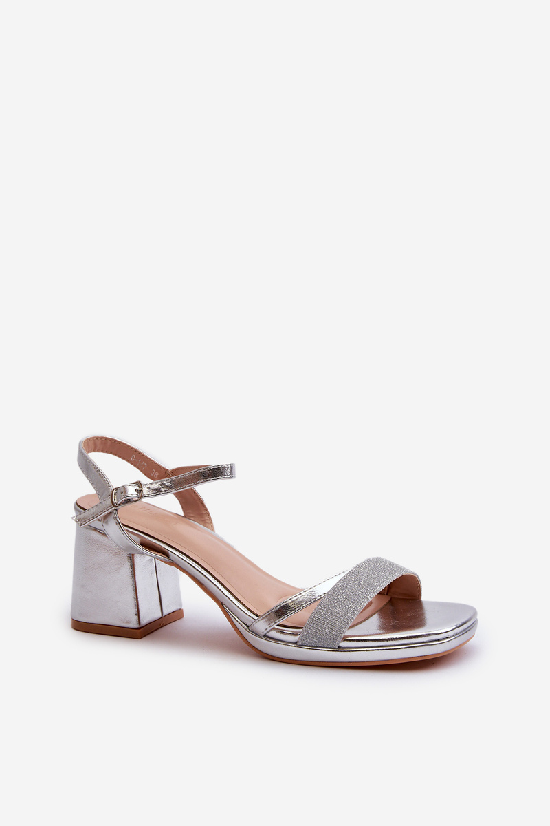 Dámske sandále na opätku so žiariacim strieborným pásikom Tessata