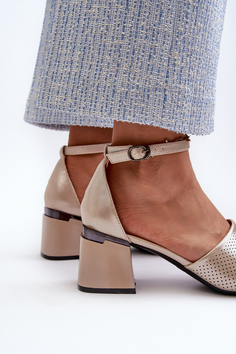 Dámske sandále na opätku z eko kože zlaté Horissa